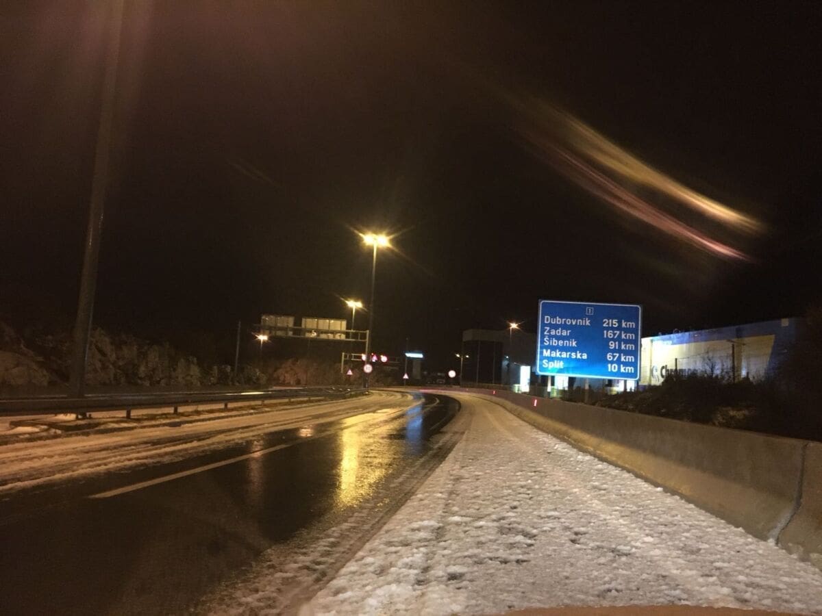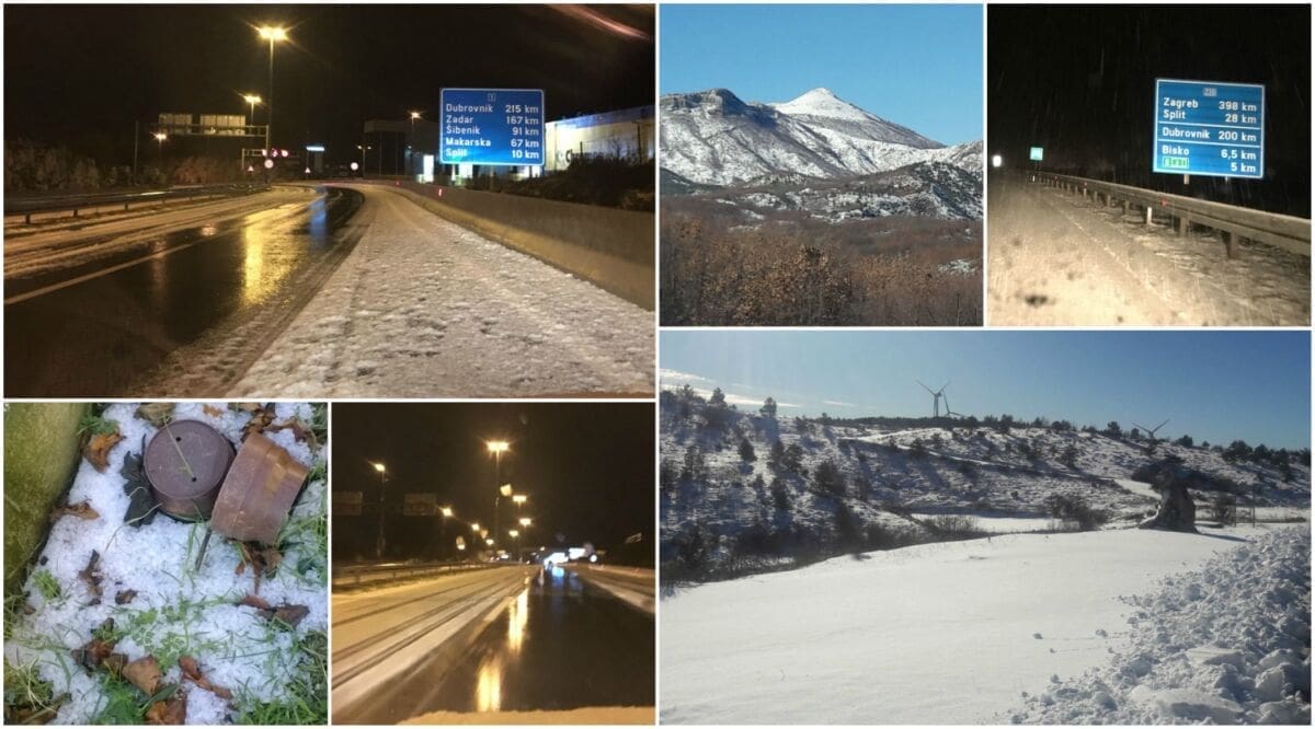 Tijekom ranih jutarnjih sati čitavu Dalmaciju zahvatilo je jako nevrijeme. Iako su se oborine u Lici i Gorskom Kotaru manifestirale u obliku snijega gdje ga je napadalo ponegdje i preko deset centimetara, obalni dio Dalmacije 'zabijelio' se zbog posve drugog razloga - krupe.