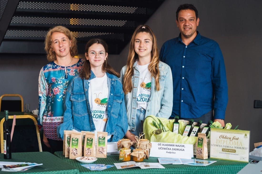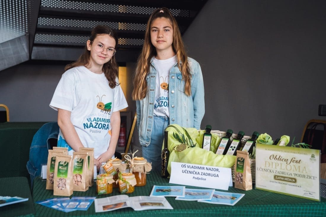 Posebnu pažnju privukle su dvije djevojčice, na njihovom štandu pored maslinovog ulja ima I ušećerenih mendula... 'Jedina smo škola ovdje. Prošle godine osvojili smo zlatnu medalju na Noćnjaku za kvalitetu ulja, ove godine se nadamo visokom mjestu...', sa smiješkom nam govori nastavnica ispred Učeničke zadruge 'Podježice', osnovne škole Vladimira Nazora Postira.