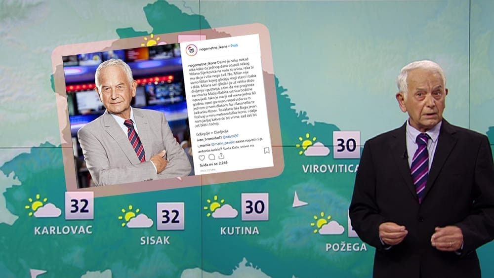 Ovu subotu napustio nas je legendarni hrvatski meteorolog Milan Sijerković. On je nekoliko desetljeća televizijsku publiku informirao putem vremenske prognoze, a zasigurno su svima u sijećanju najviše ostale meteorološke poslovice i uzrečice s kojima bi zaključio vijesti.