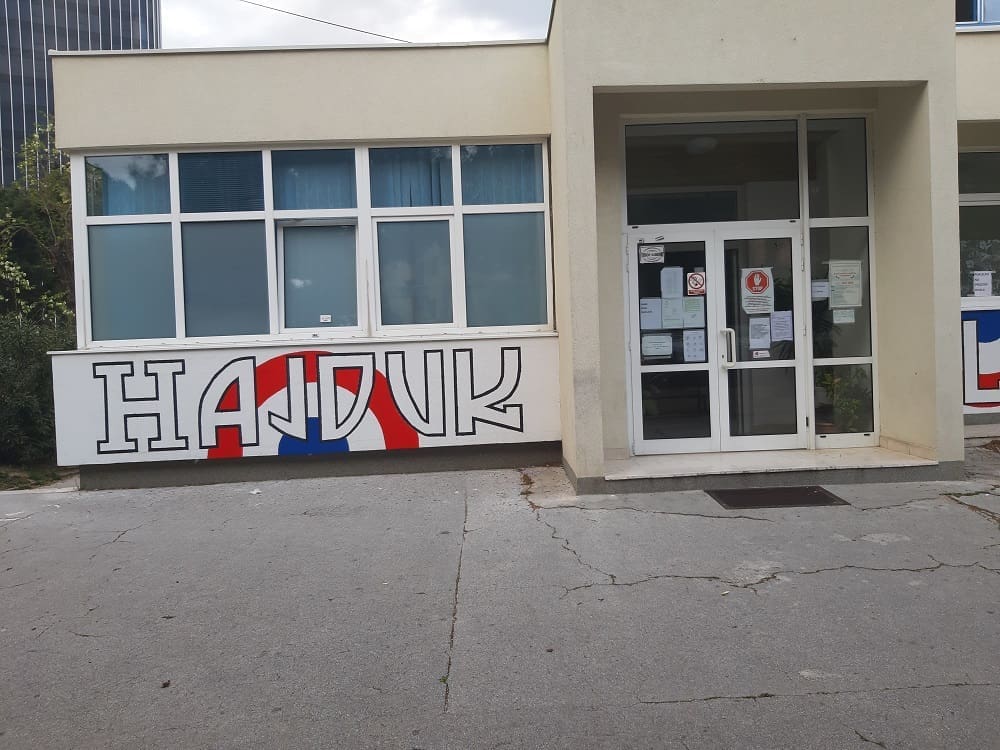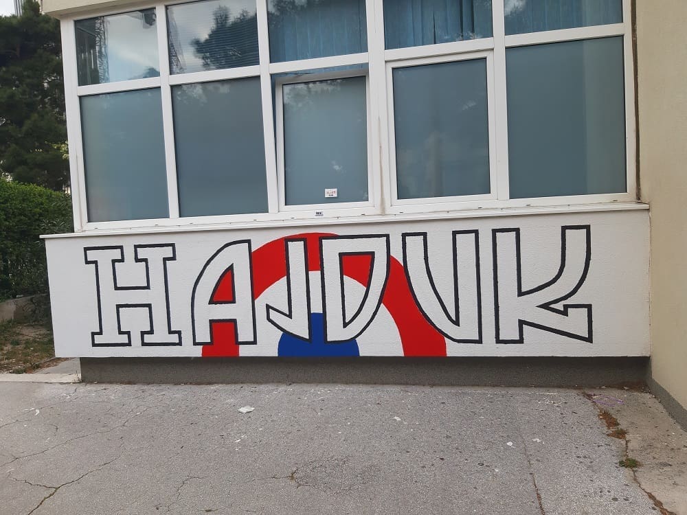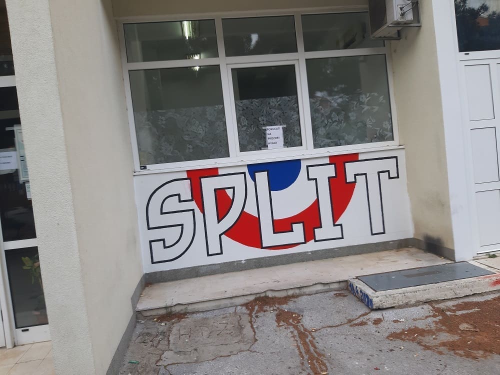 Naime, nekoliko Hajdukovih navijača brzinski su na pročelju Ambulante Kman, ispred glavnog ulaza u Šibenskoj ulici, nacrtali i obojili veliki mural.