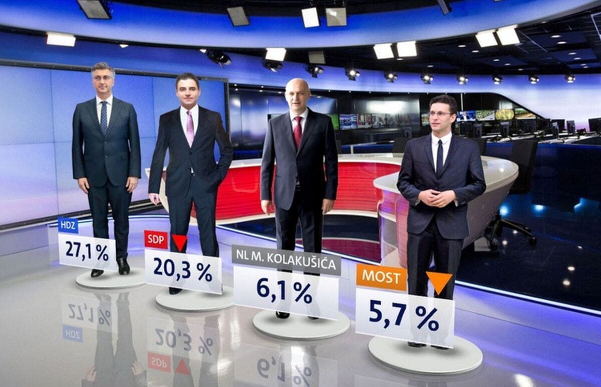 Lista Mislava Kolakušića je treća te može računati na 6,1 posto. Unutar izbornog praga je, također s manjom potporom u odnosu na mjesec prije, Most s 5,7 posto potpore.