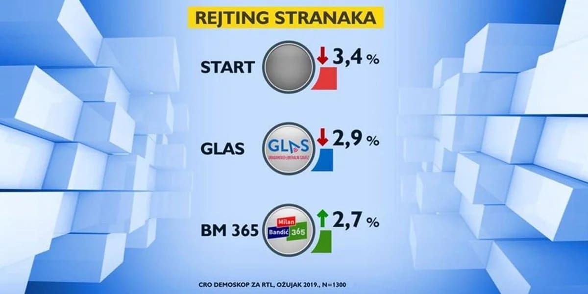 Istovremeno, pada i START i GLAS. Prošlog je mjeseca START zabljesnuo s gotovo 5 posto potpore (4,6) posto, ali sada se ispuhao na 3,4 posto. GLAS gubi gotovo cijeli postotni poen i sada je na 2,9 posto (3,8 posto u veljači). Stranka zagrebačkog gradonačelnika bilježi rast uz potporu od 2,7 posto, a blago ispod toga je HNS s 2,5 posto (1,6 posto u veljači), što je najveći izbor ove stranke od ulaska u koaliciju s HDZ-om.