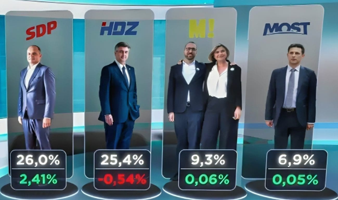 SDP je s 26 posto, prema anketi, vodeća stranka. To se posljednji put dogodilo u ožujku 2020. godine. HDZ je pao na drugo mjesto.