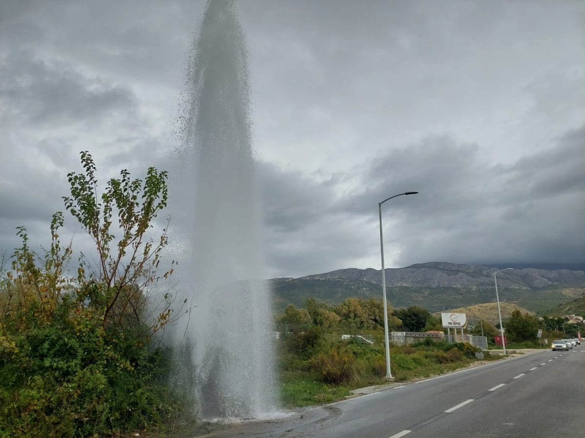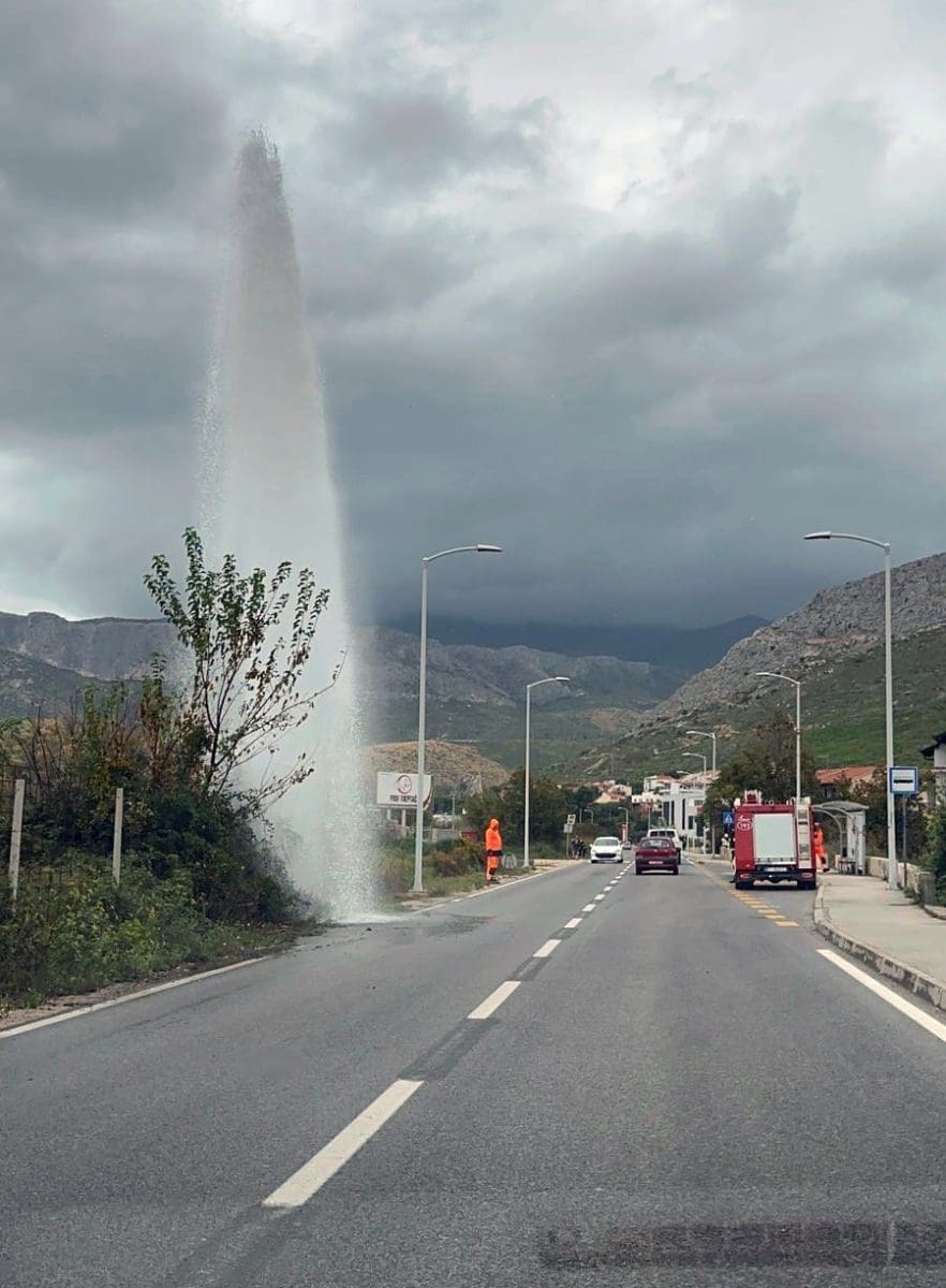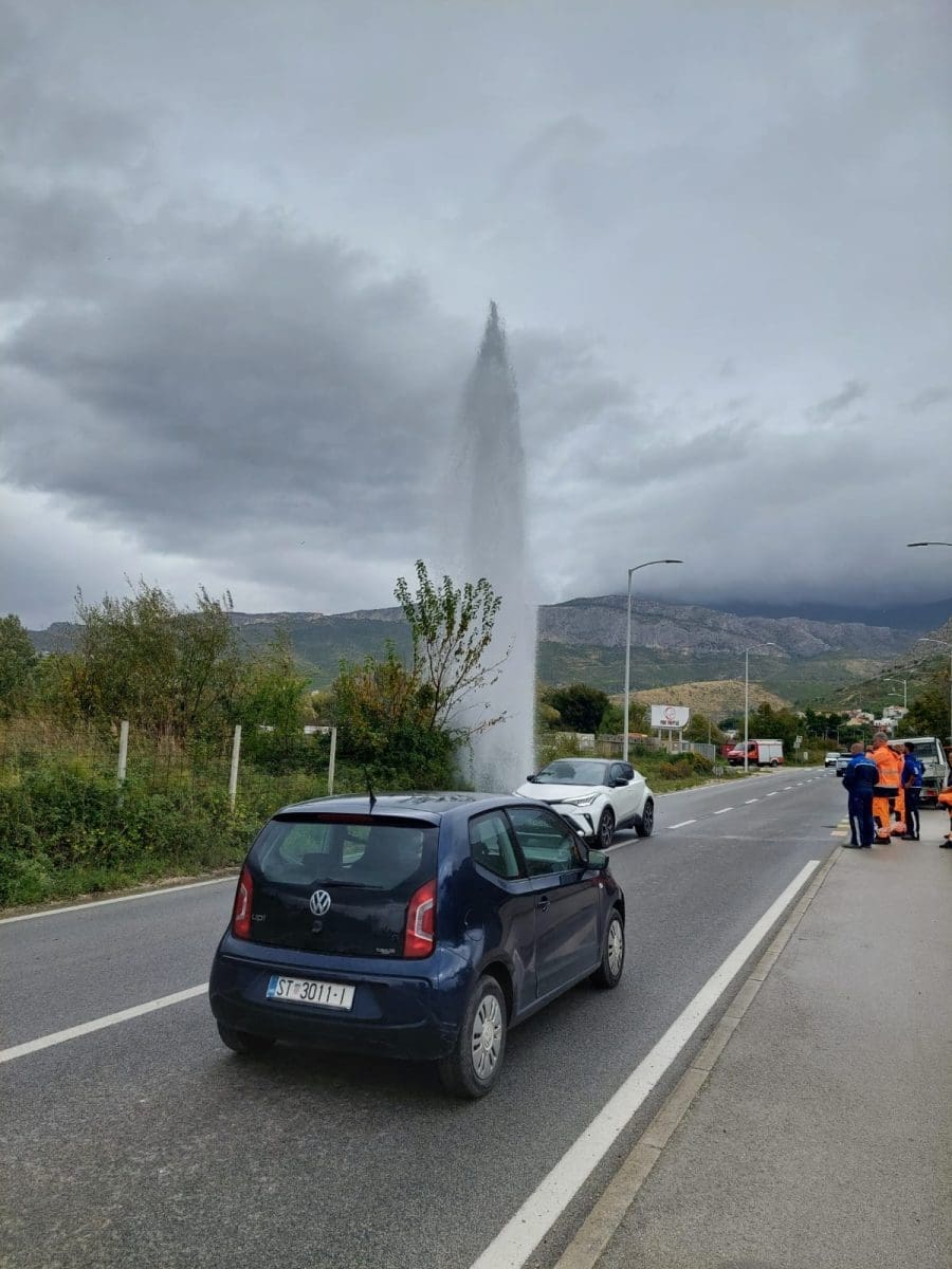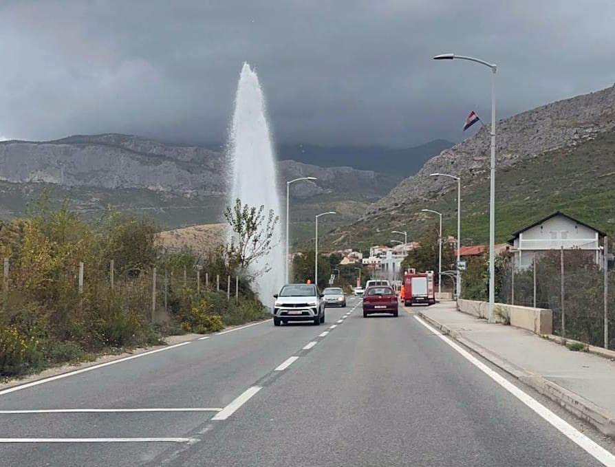 Nešto iza 11 sati došlo je do puknuća hidranta na Poljičkoj cesti koja vodi od mora prema Žrnovnici.