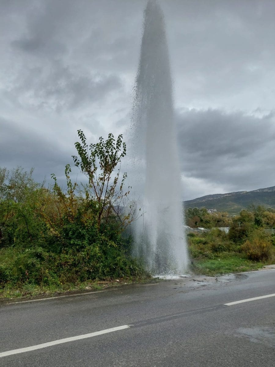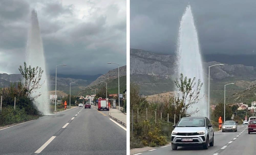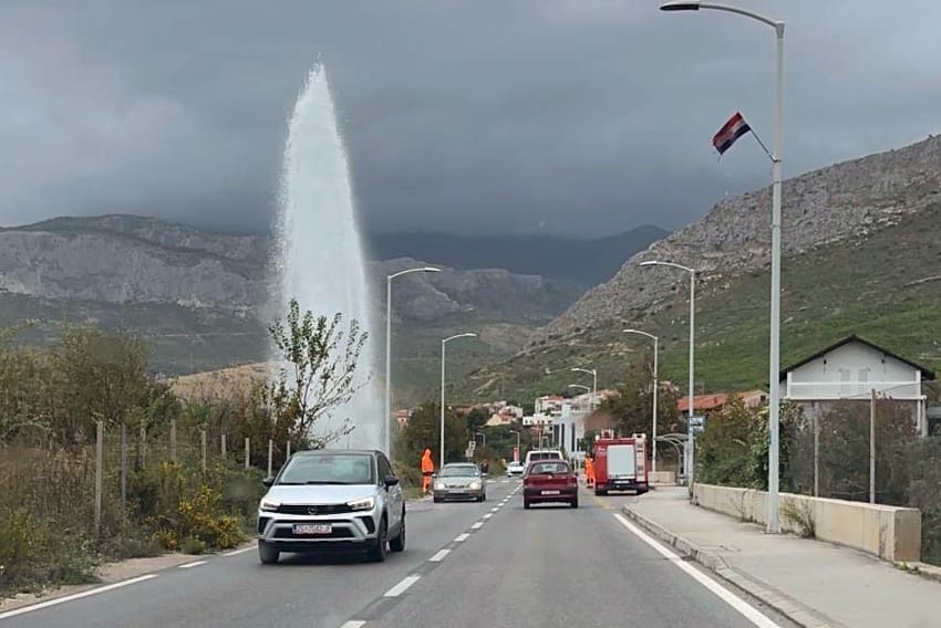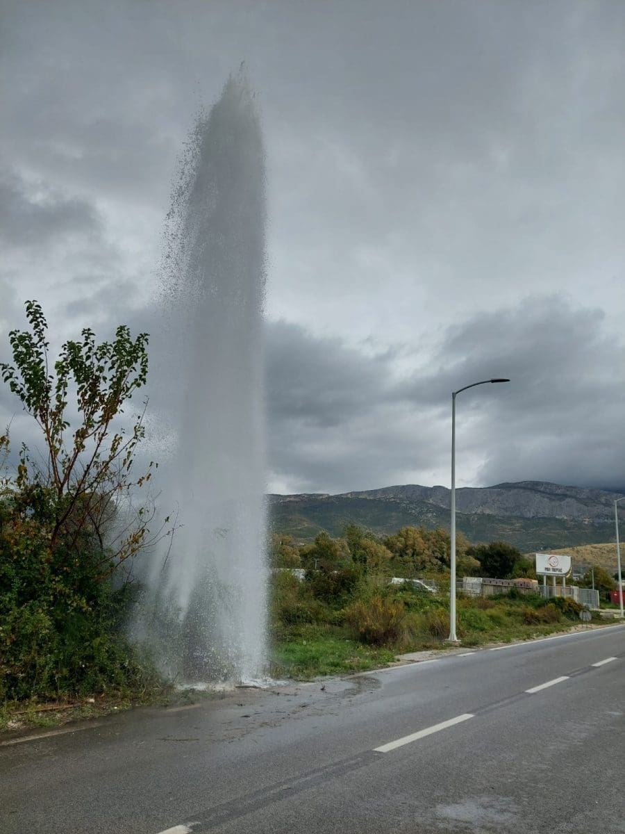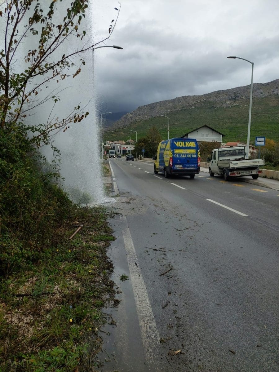 Nešto iza 11 sati došlo je do puknuća hidranta na Poljičkoj cesti koja vodi od mora prema Žrnovnici.