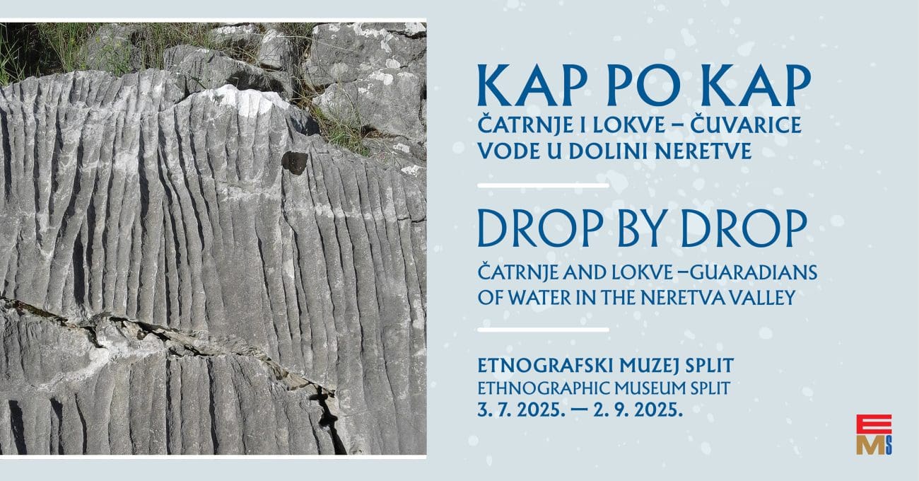 U srijedu, 2. srpnja s početkom u 20 sati, u Etnografskom muzeju Split bit će svečano otvorena izložba Kap po kap – Čatrnje i lokve: čuvarice vode u dolini Neretve. Ova tematska izložba posvećena je tradicijskim načinima prikupljanja i očuvanja vode u surovim krškim krajevima, s posebnim naglaskom na čatrnje i lokve – građevine koje su kroz povijest omogućavale opstanak života u bezvodnim predjelima jadranskog zaleđa.