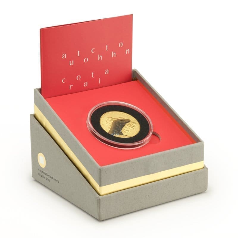 Novi vlasnici, svoju će numizmatičku kovanicu „Crna gušterica“ dobiti u kompletnom setu koji uključuje kapsulu, dekorativnu poklon kutiju, certifikat koji potpisuje guverner Hrvatske narodne banke i knjižicu.