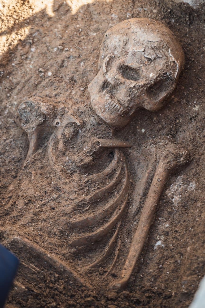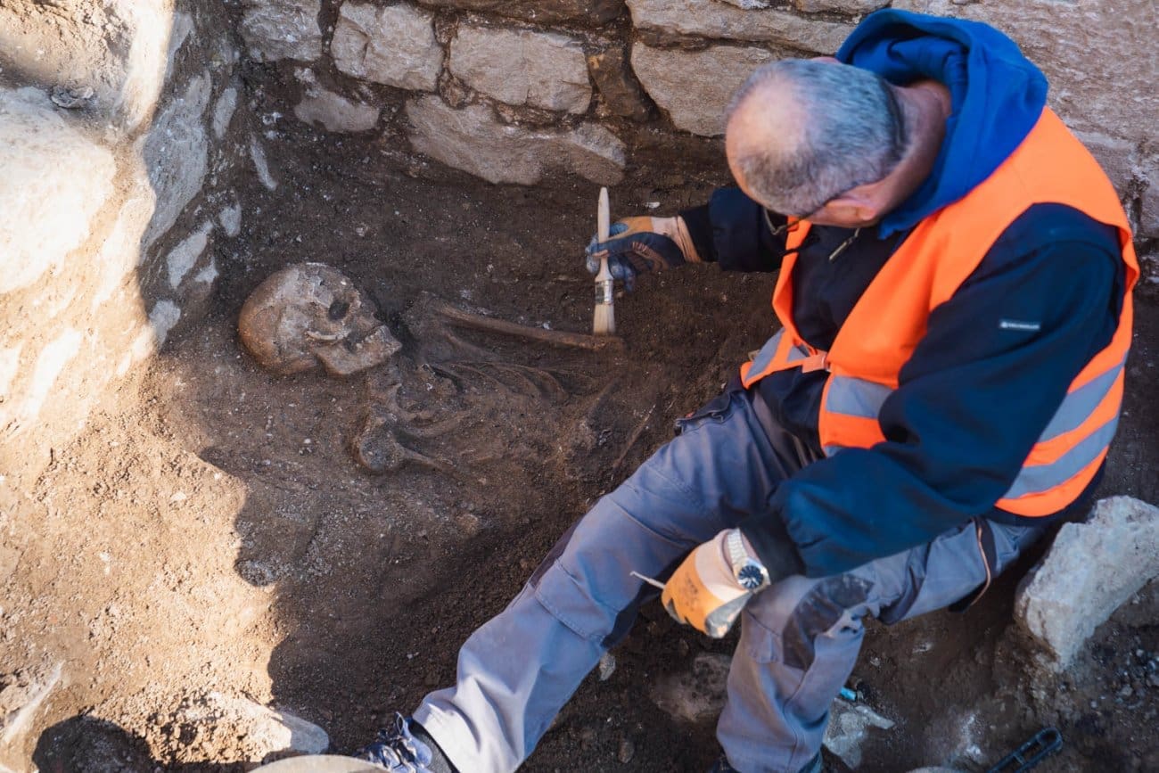 Gotovo svakodnevno se dolazi do novih otkrića, a nedavno su pronašli šest grobova sa skeletima, od kojih su očistili tri - muškarca, ženu i dijete. Kosturi su još jučer odneseni na analizu. Jedan kostur se sada otkopava, a Dalmacija Danas na terenu je 'ulovila' sliku torza tek iskopanog kostura. Uz to, imali smo priliku uhvatiti i svod akvadukta koji tu prolazi.
