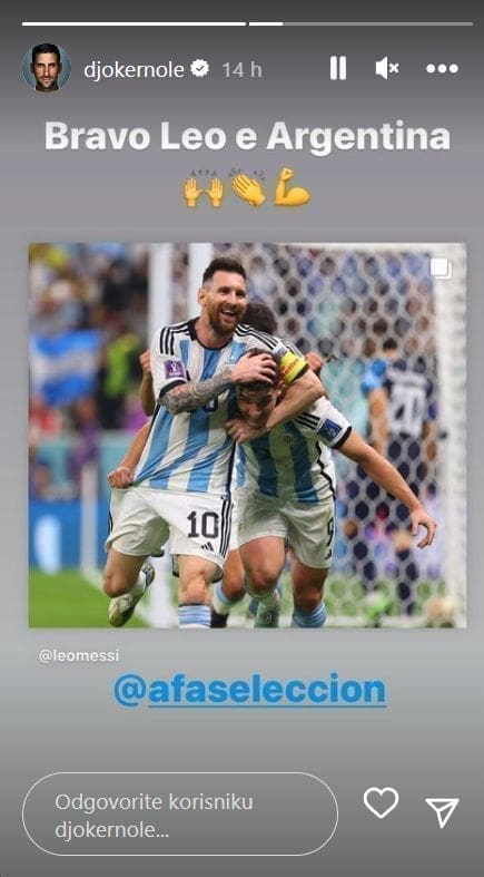 ''Bravo za Lea i Argentinu'', dodao je Đoković na idućem storyju.