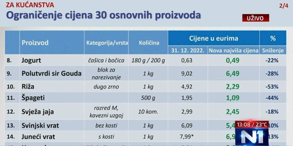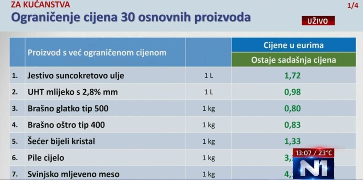 Ograničenje cijena će građanima jamčiti povoljnije cijene određenih namirnica i imat će efekt u usporavanju inflacije, pojasnio je premijer, piše N1.