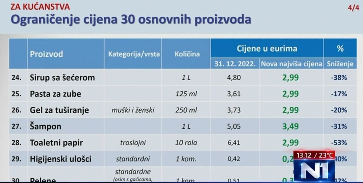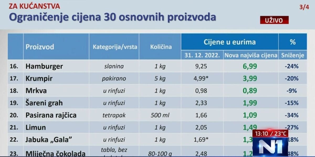 U nastavku pogledajte 30 artikala kojima su novim mjerama ograničene cijene.