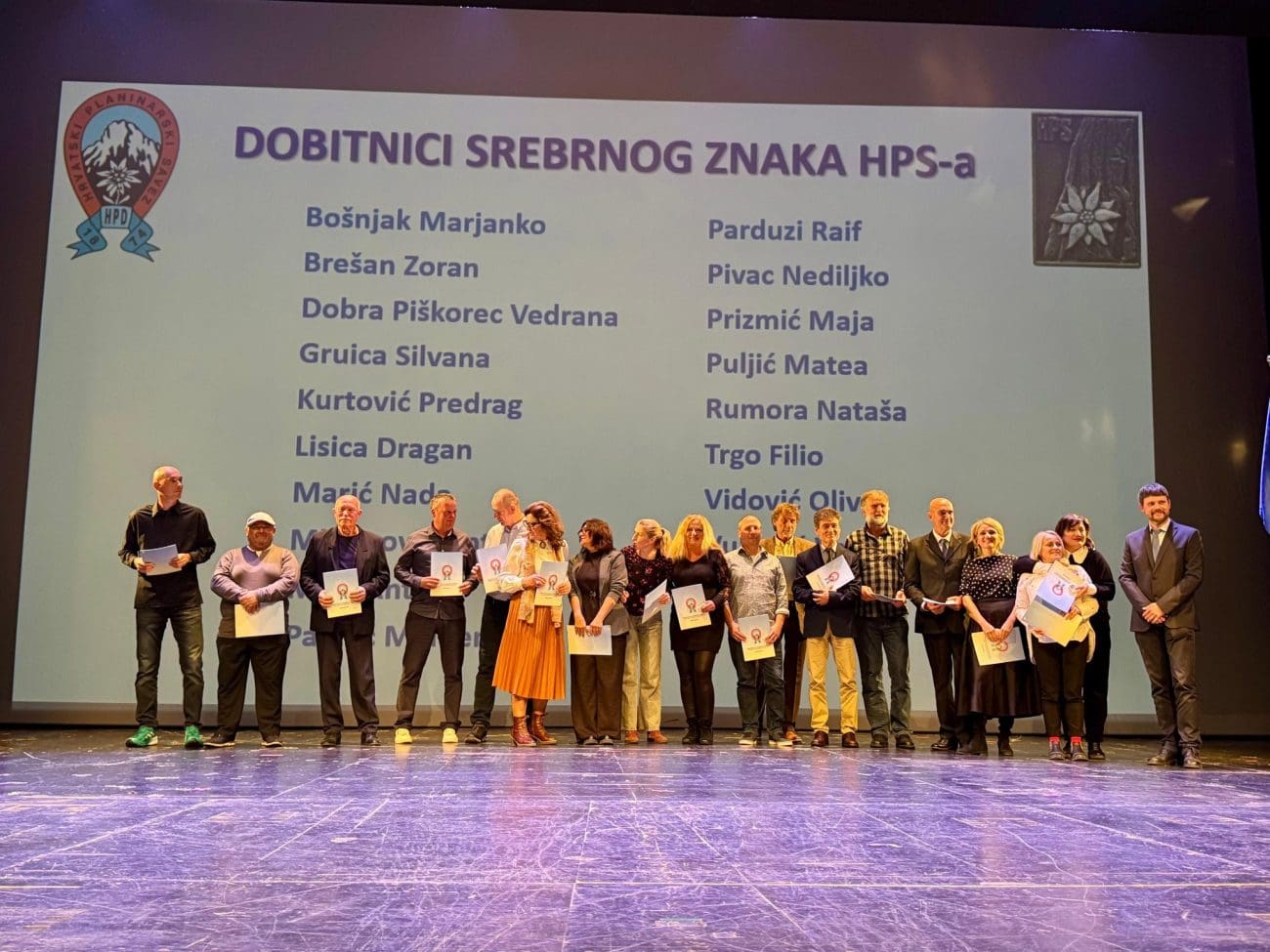 Središnji dio proslave obilježila je dodjela priznanja zaslužnim članovima. Predsjednik Izvršnog odbora HPS-a dr. sc. Igor Eterović dodijelio je brončana, srebrna i zlatna priznanja te plakete HPS-a – najviši stupanj priznanja koji se planinarima dodjeljuje za životno djelo, izuzetne zasluge i dugogodišnji doprinos razvoju planinarstva u Hrvatskoj. Plakete su dobili predsjednik Ivica Sorić, dopredsjednica Sonja Nikolin i član Upravnog odbora Ivan Bućan.