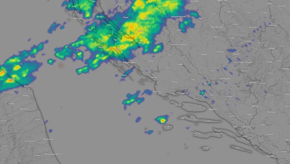 Danju se djelomično razvedrilo, a do novog porasta naoblake sa zapada došlo je tijekom večernji sati. Kako se može vidjeti na meteorološkom radaru, kiša je zahvatila sjevernu Dalmaciju, osobito zadarsko područje, gdje mjestimice ima i grmljavine. Manji kumulonimbus razvio se i kod Visa.