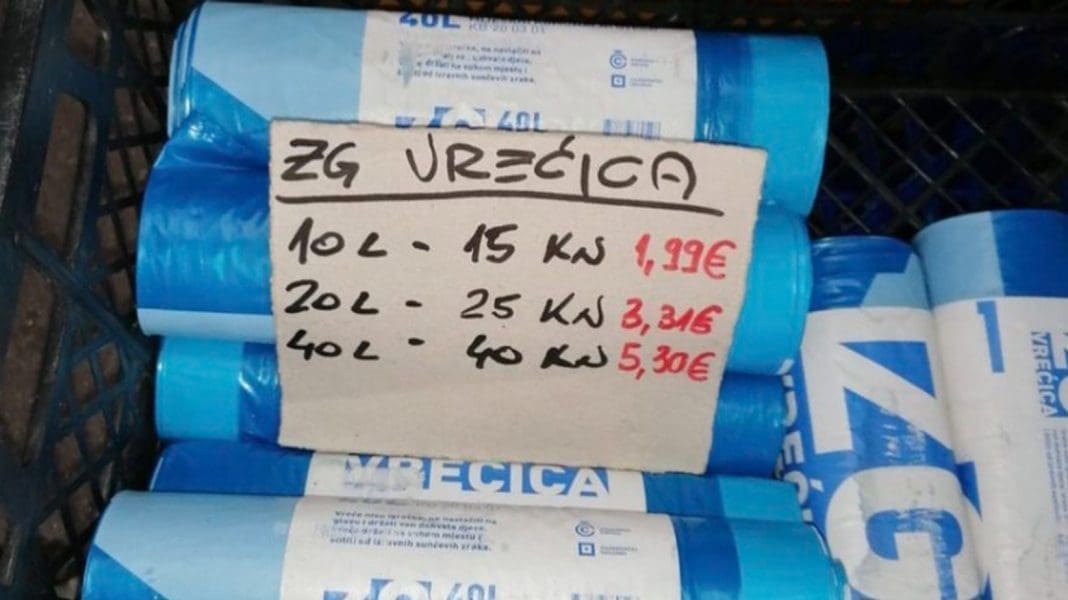 Vrećice na fotografiji izgledaju jednako kao one koje će prodavati Grad Zagreb, a cijena na njima je 15 kuna za paket od 10 litara, 25 za 20 litara i 40 za 40 litara.
