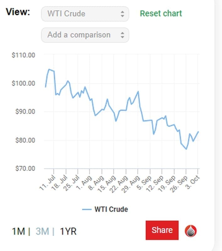 Inače, ovako izgleda graf kretanja cijene sirove nafte posljednja 3 mjeseca: