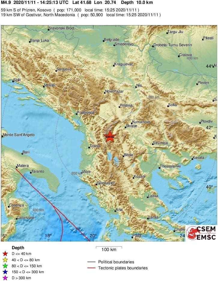 Prije manje od sat vremena, novi potres jačine 4.9 po Richteru pogodio je sjevernomakedonsko područje.