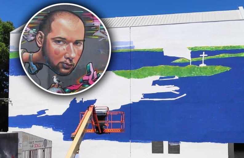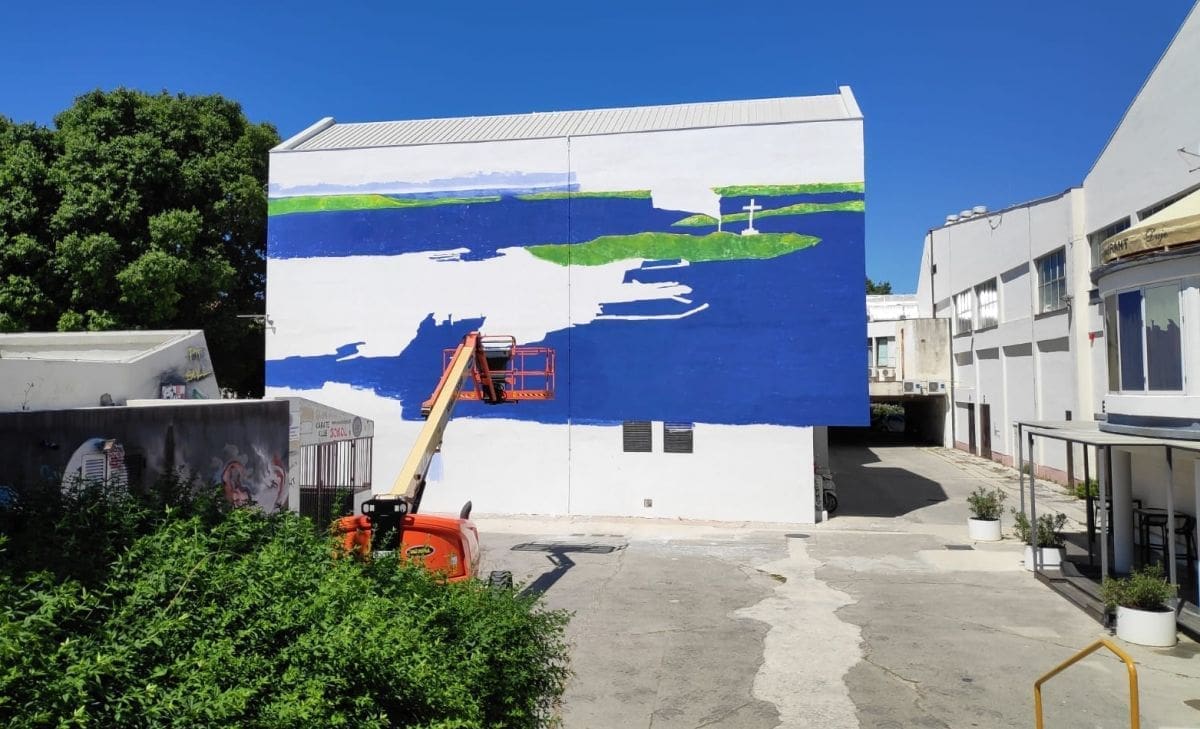 A jutros obojani zid dobiva novi mural. Kako se može vidjeti, pejzažnog je karaktera jer na njemu se sada crta splitski poluotok, okolni otoci... Zanimljivo je da Marjanom dominira križ koji je prikazan viši od samog Marjana. Kako će izgledati konačno rješenje, vidjet ćemo uskoro...
