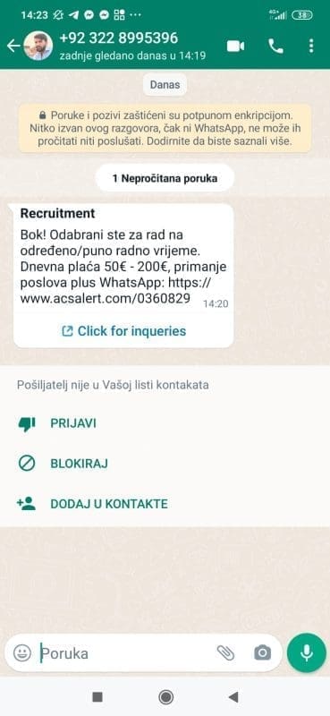 Naime, na svoje WhatsApp račune su dobili poruke u kojima ih se obavještava da su primljeni na određeni posao. Trebaju naravno kliknuti na poveznicu i tako doći do dugo traženog "posla".