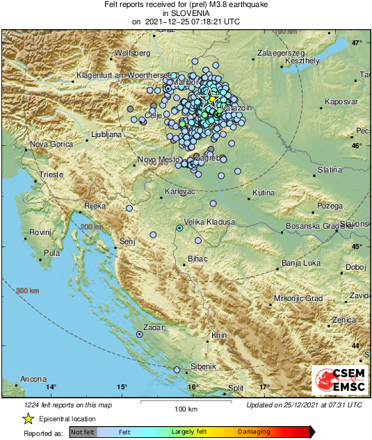 Nešto iza 8 sati i 20 minuta dogodio se potres na području Hrvatske i Slovenije.