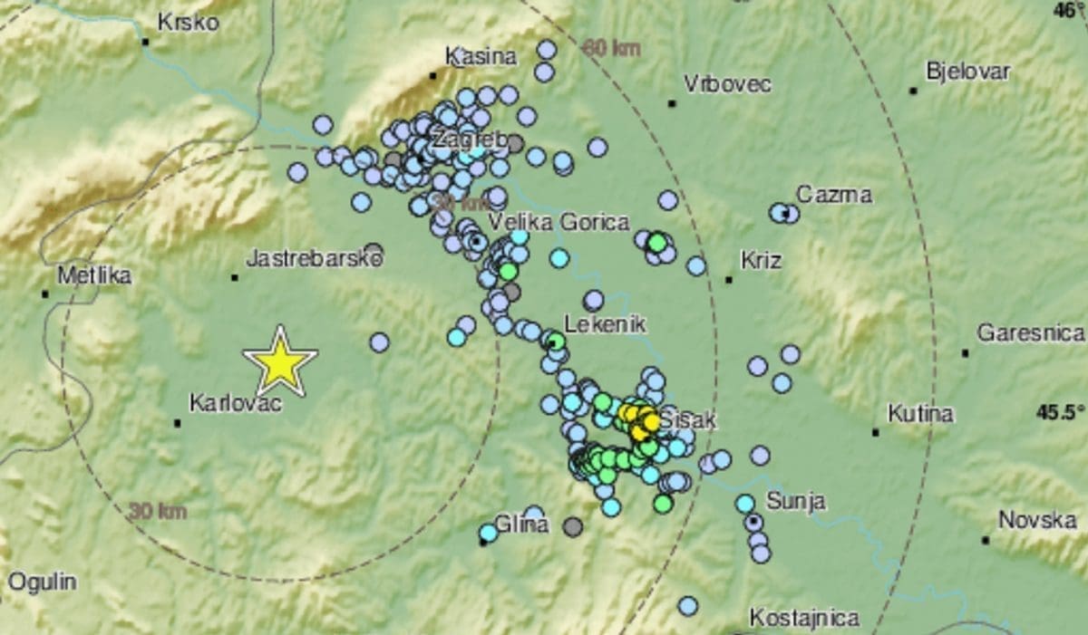 Epicentar je bio pet kilometara zapadno od Siska.