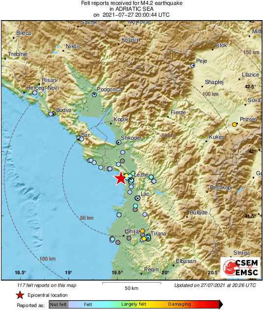 Prema podacima stranice EMSC, epicentar potresa bio je na albanskoj obali, 9 kilometara zapadno od grada Lezhe i 52 kilometra sjeverno od Durresa.