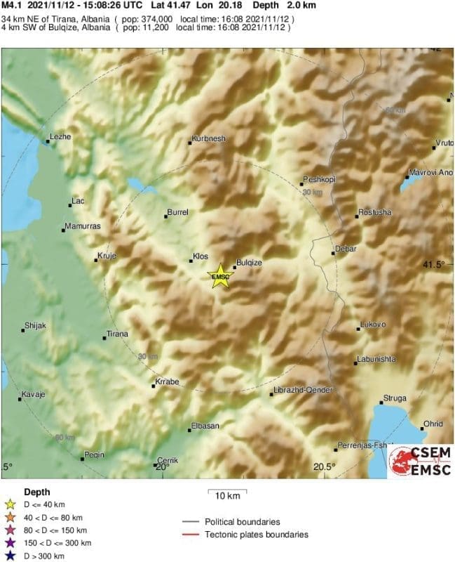 Prema podacima EMSC-a, magnituda je iznosila 4.1 prema Richteru, a epicentar je bio 4 kilometra jugozapadno od grada Bulqizë.