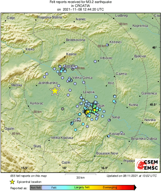 Dubina potresa procjenjuje se na 10 kilometara, a ovo podrhtavanje najviše su mogli osjetiti stanovnici Velike Gorice i okolnih mjesta u Zagrebačkoj županiji, ali i stanovnici Sisačko-moslavačke županije.