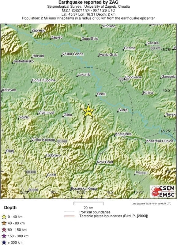 Prema podacima EMSC-a, magnituda je iznosila 2.1 prema Richteru, a epicentar je bio 12 km JJZ od Siska.