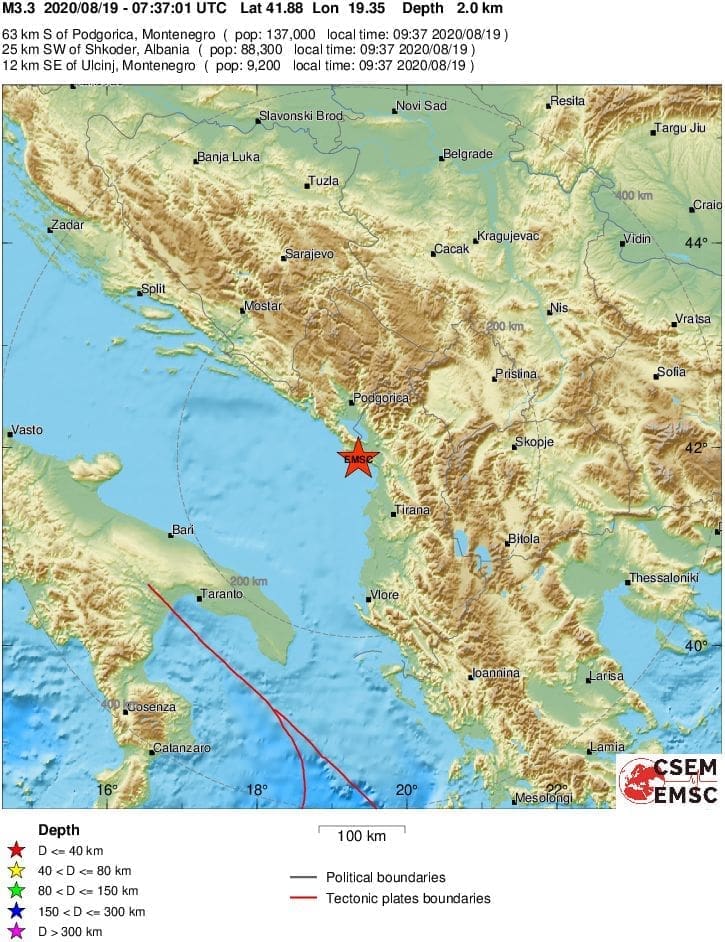 Prema podacima EMSC-a u srijedu u 9 sati i 37 minuta umjeren potres zatresao je područje Crne Gore.