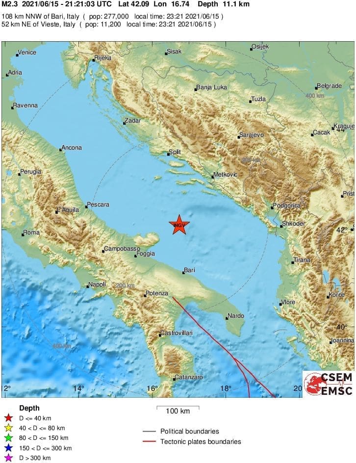 Prema podacima EMSC-a, magnituda potresa je iznosila 2.3 prema Richteru, a epicentar je bio 60 kilometara jugoistočno od Palagruže.