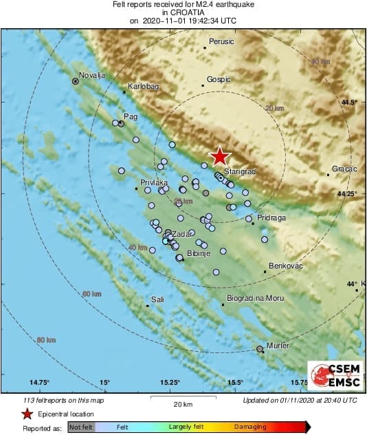 Epicentar večerašnjeg potresa bio je 12 kilometara od Posedarja. Procijenjena dubina je 12 kilometara.