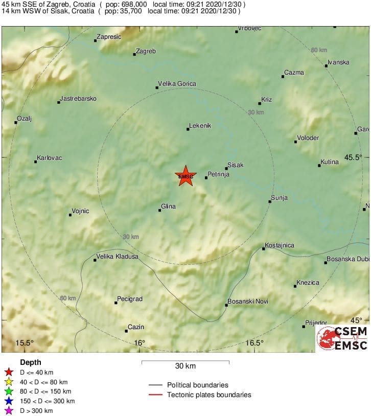 Prema podacima EMSC-a, magnituda mi je bila 4.0 prema Richteru, a epicentar 14 kilometara zapad-jugozapadno od Siska.
