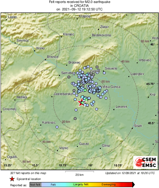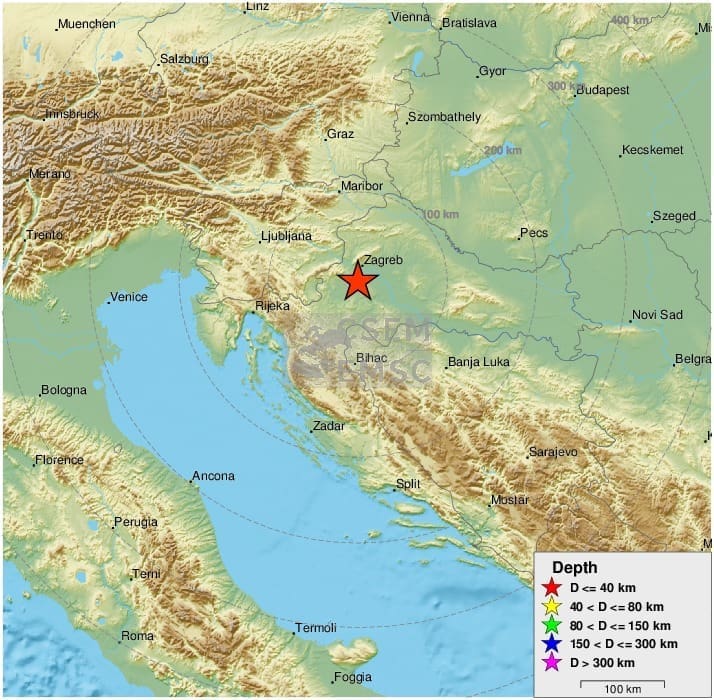 Epicentar potresa bio je 15 kilometara jugozapadno od Velike Gorice i 21 kilometar južno od Zagreba.