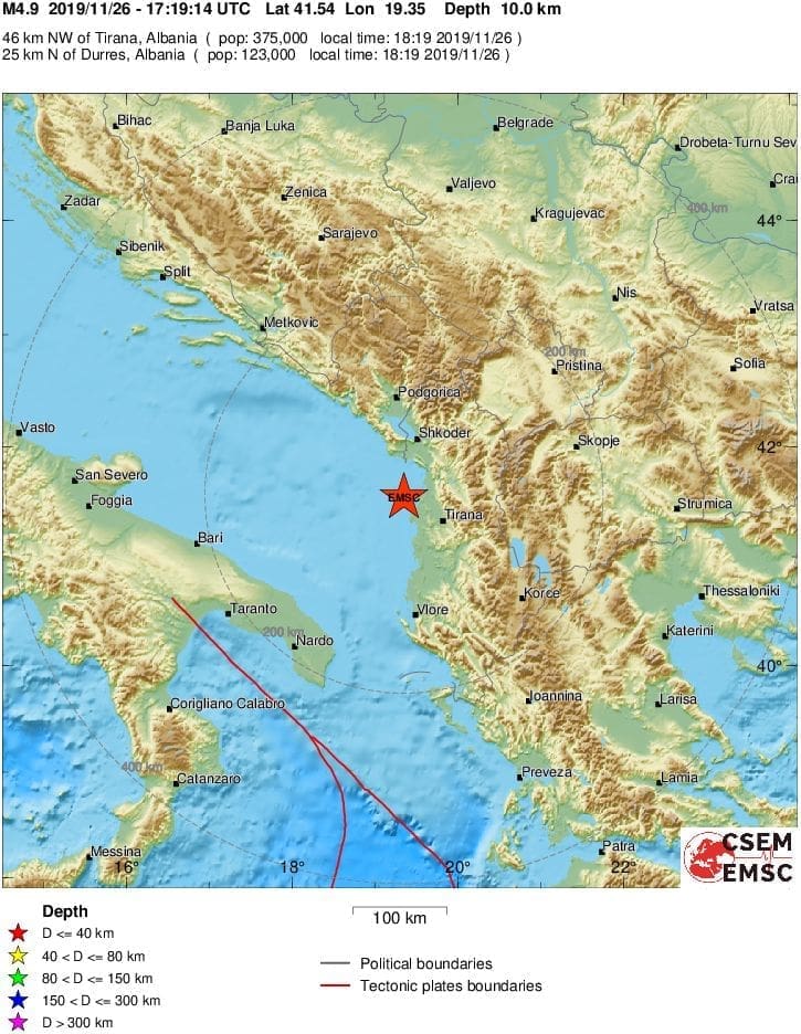 Novi potres zatresao je Albaniju u 18 sati i 19 minuta. Ovog puta magnituda je iznosila 4.7 po Richteru, a epicentar je bio 43 kilometra sjeverozapadno od Tirane.