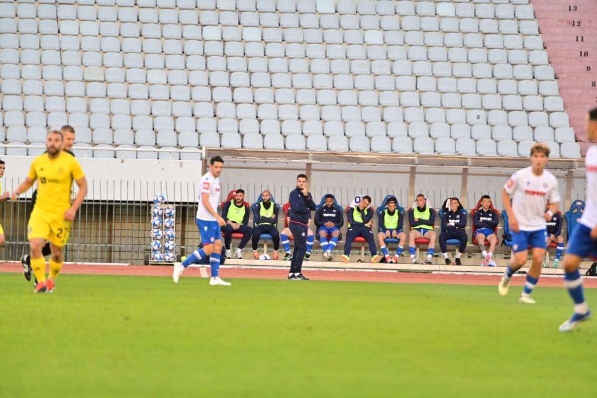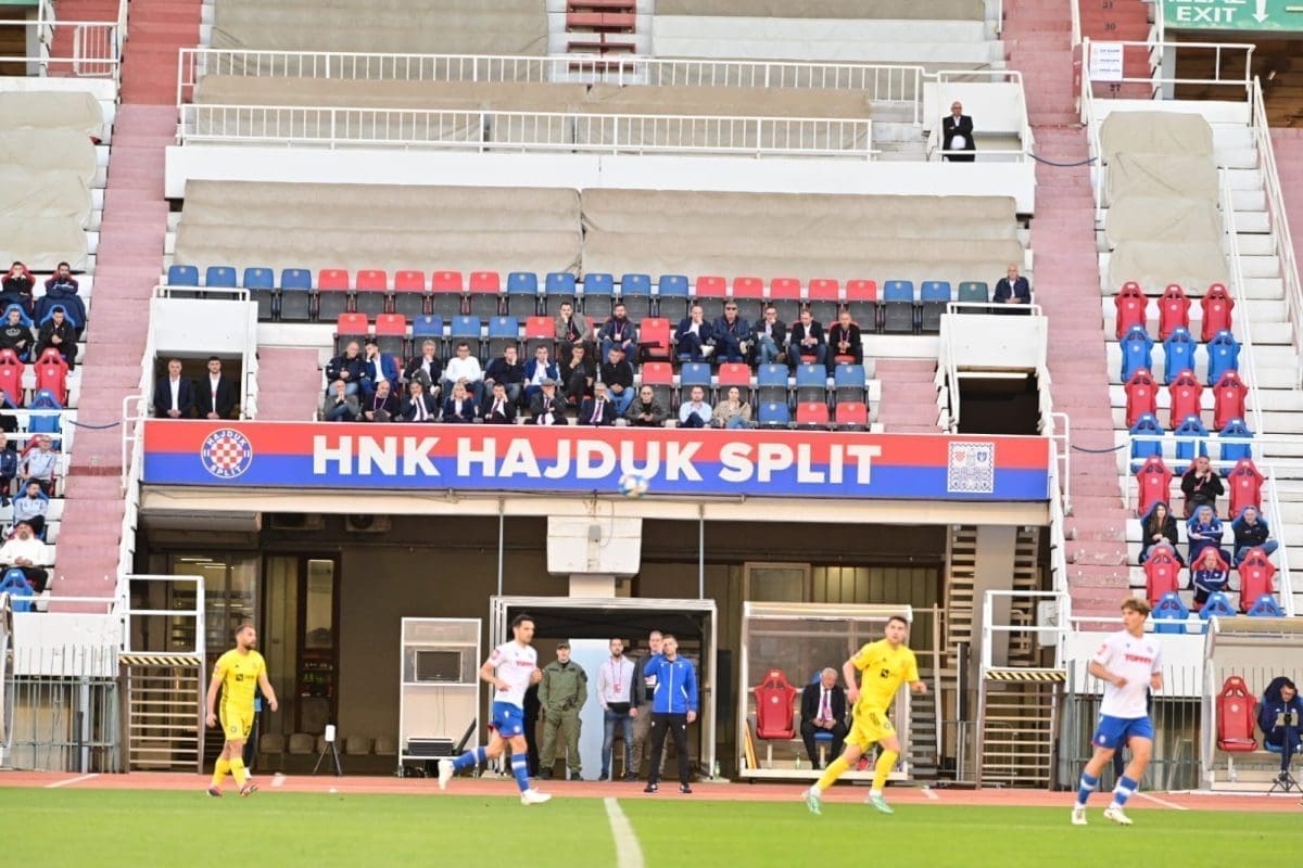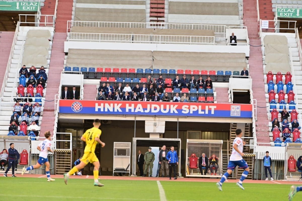 Na domaćem susretu s Rudešom novi predsjednik Hajduka Ivan Bilić prvi put iz svečane lože stadiona na Poljudu i u ulozi čelnog čovjeka kluba prati utakmicu ‘bijelih‘ u društvu savjetnika Uprave za struku Bore Primorca.