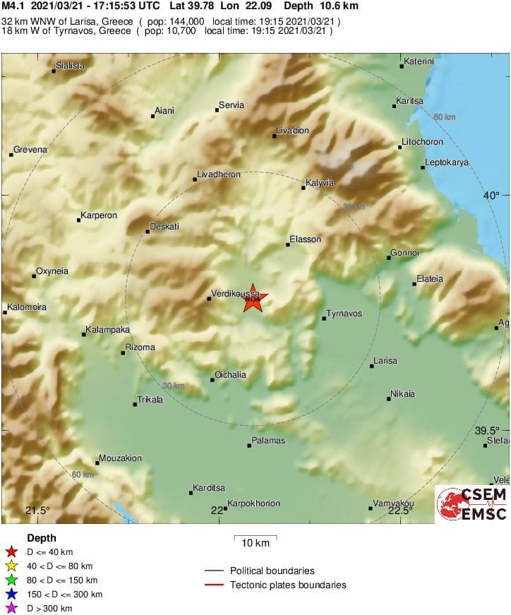 Kako je izvijestio EMSC, magnituda potresa je iznosila 4.2 prema Richteru, a epicentar mu je bio 16 kilometara zapadno od grada Týrnavos.