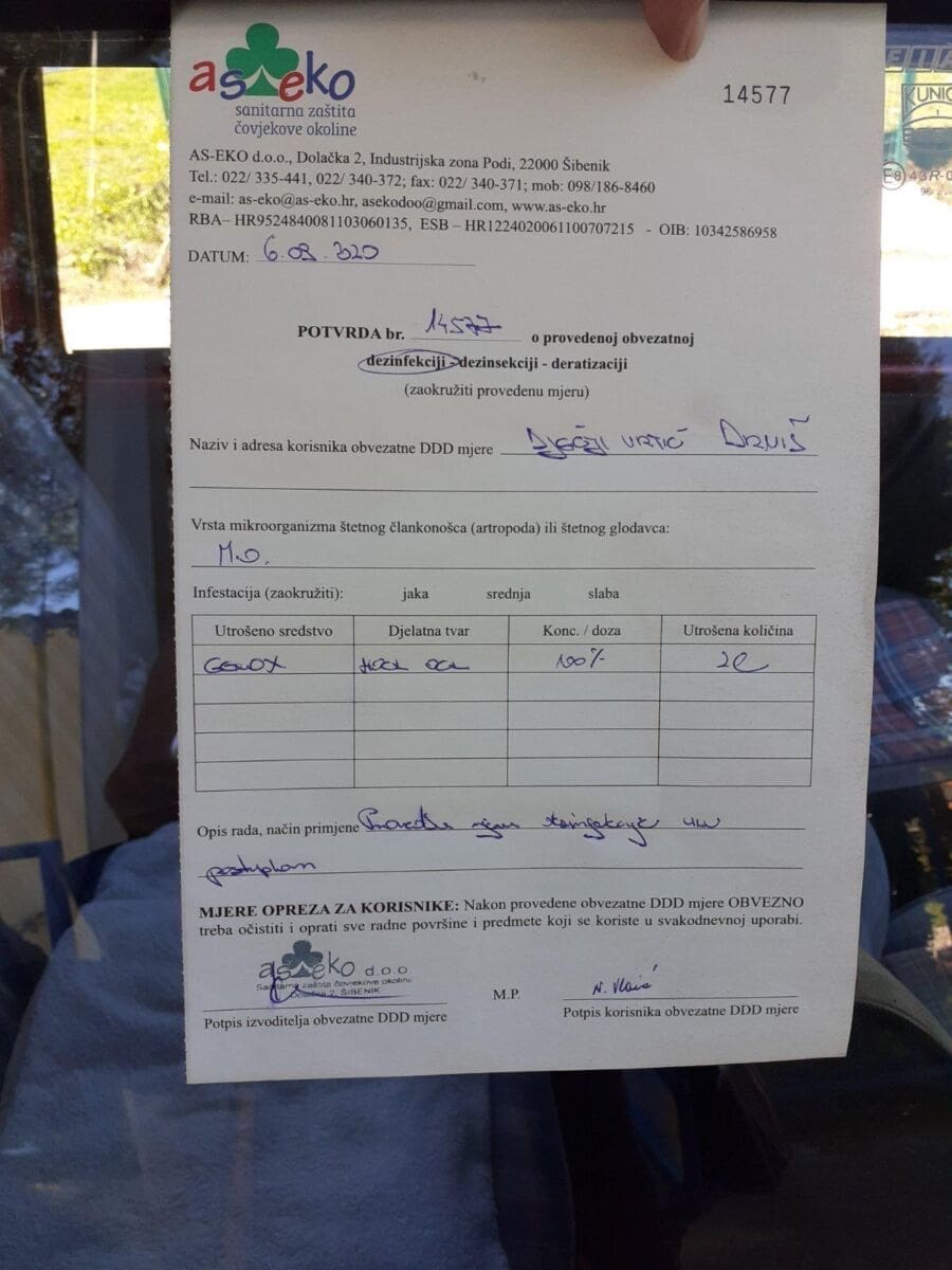 Ovim putem još jednom apeliramo na SVE građane da se moraju pridržavati svih preporuka HZJZ i odluka Nacionalnog Stožera civilne zaštite, da u zatvorenim prostorima u kojima dolaze u kontakt sa drugim osobama OBAVEZNO nose zaštitnu masku, drže međusobnu propisanu udaljenost te koriste dezinfekcijska sredstva”, navodi se u priopćenju Stožera civilne zaštite Grada Drniša. Tijekom dana provedena je dezinfekcija Dječjeg vrtića Drniš od strane tvrtke AS-EKO d.o.o.