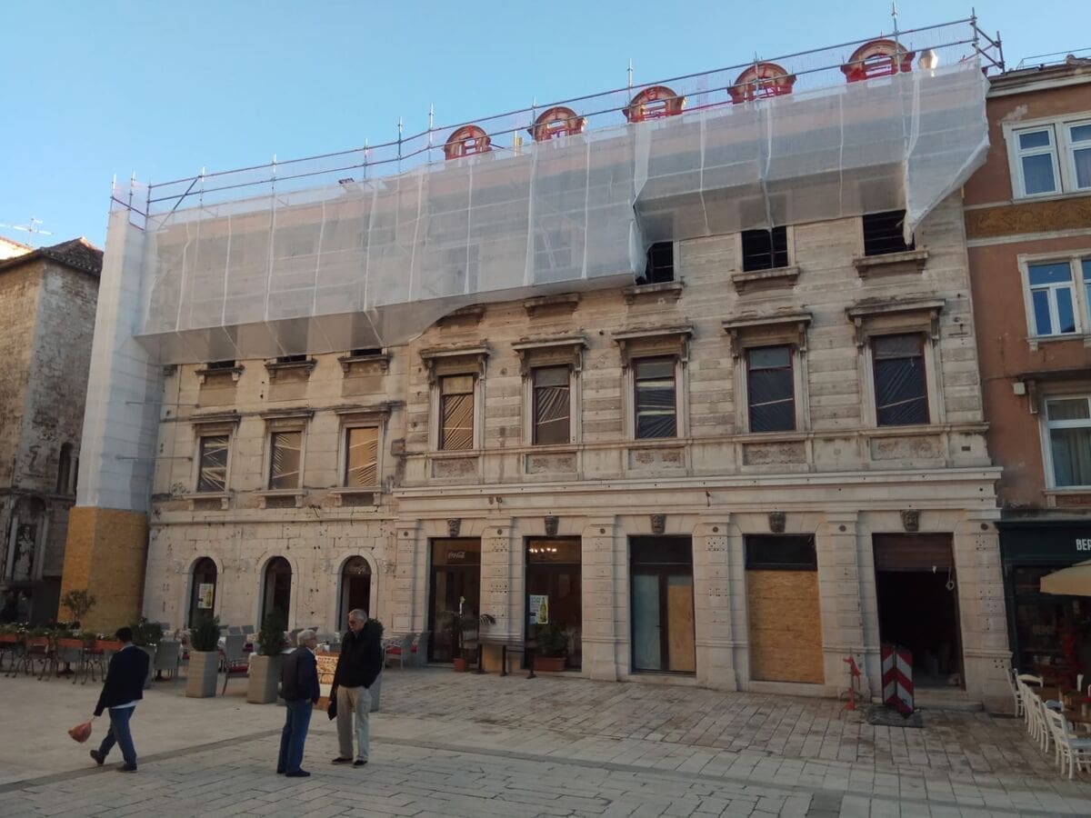 Pročelje Centrala bilo je prekriveno skelama i zaštitnim platnima koji su jučer većinom dijelom uklonjeni. Do izražaja je došla restaurirana, "ispolirana" fasada. Tako Pjaca, srce splitskog društvenog života još od 13. stoljeća, pomalo vraća svoj stari sjaj.