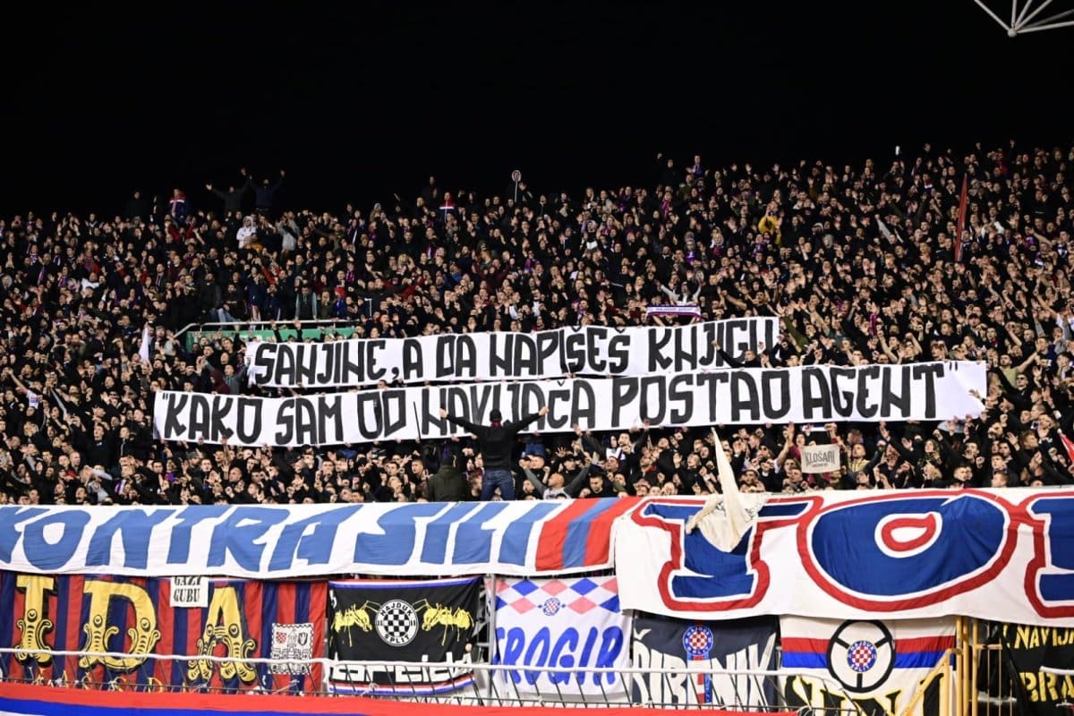 U 41.minuti, Kulenović je ostao ležati na travnjaku, Dinamo je izveo slobodni udarac koji je otišao u korner. U međuvremenu Toricda je razvila transparent: "SANJINE, A DA NAPIŠEŠ KNJIGU / KAKO SAM OD NAVIJAČA POSTAO AGENT".