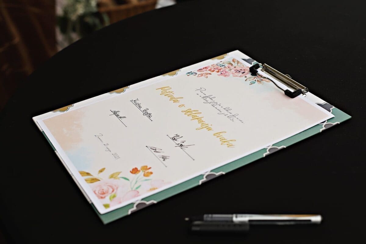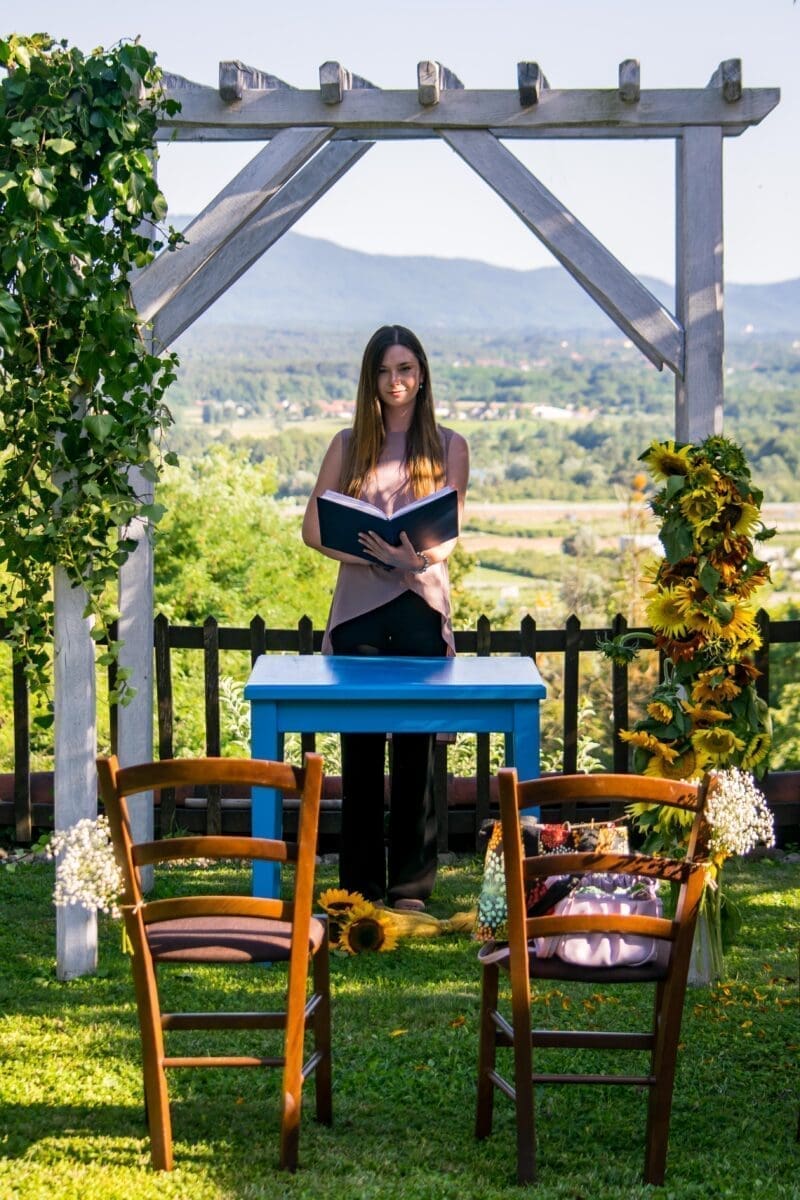Mladenci uz mene imaju voditelja ceremonije, ali i pomoć u organizaciji i cijelom procesu. Ovdje sam da im dam savjete i pomognem s nekim pripremnim pitanjima. Uz to po želji pripremam i grafičku potvrdu koju mogu koristiti kao uspomenu na zidu ili u vjenčanoj knjizi s potpisima i datumom ceremonije“, navodi.