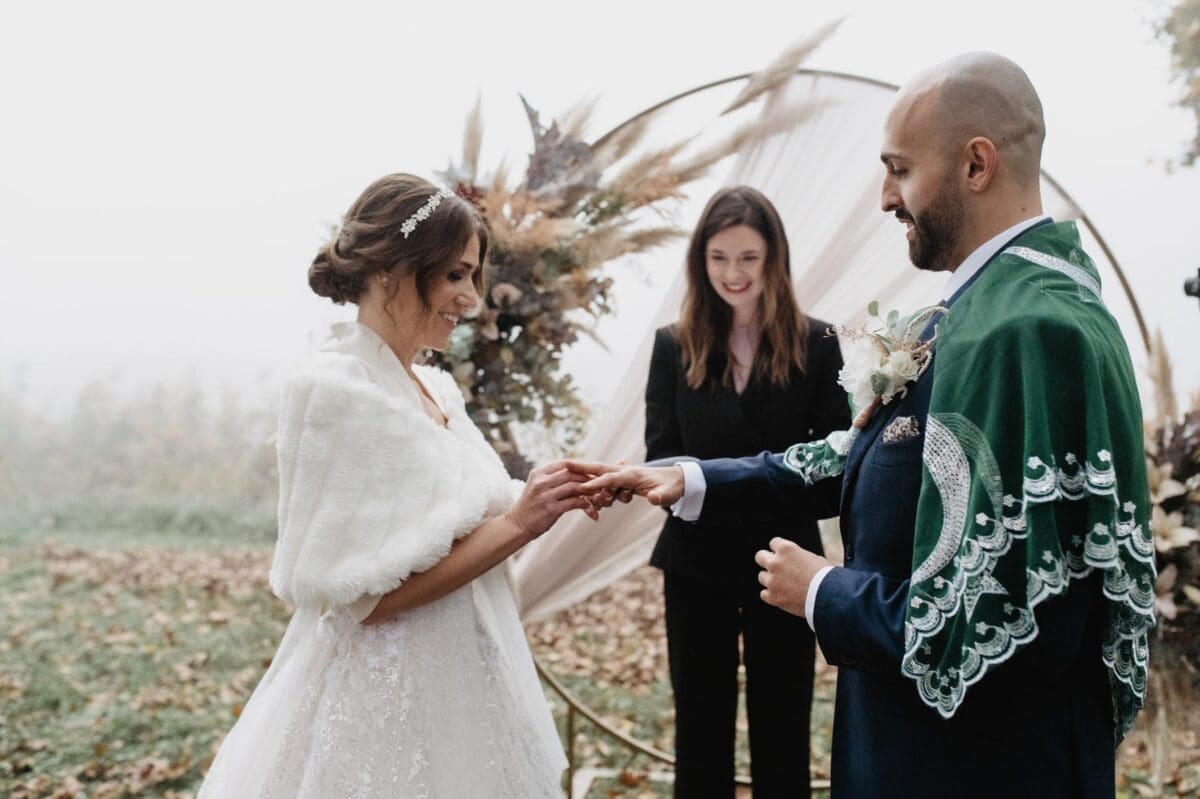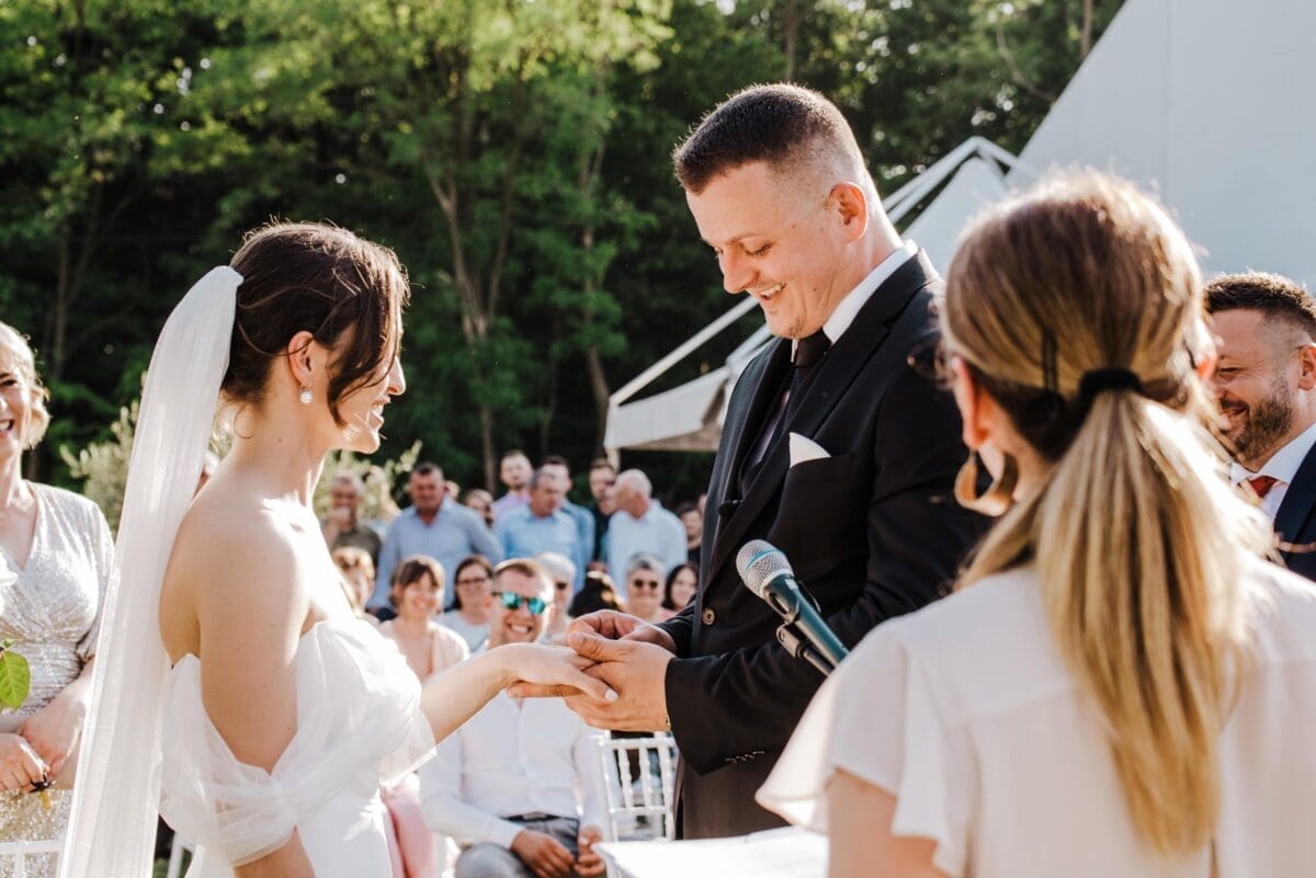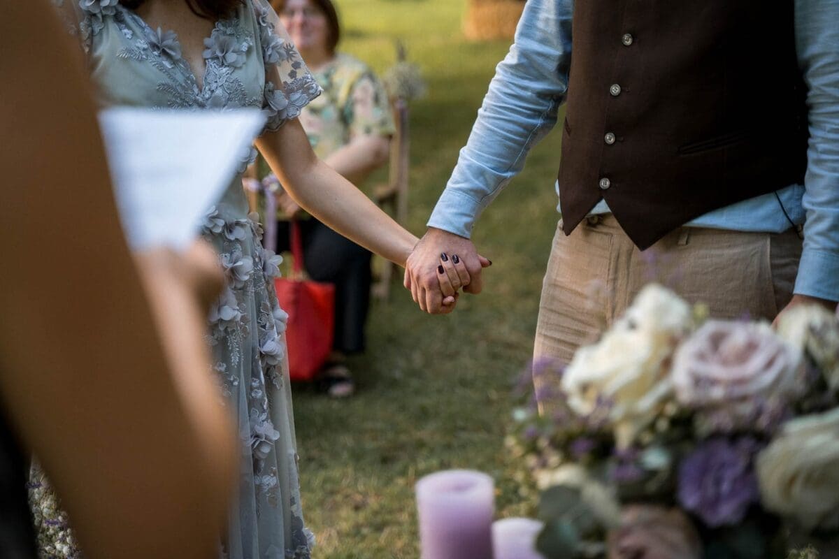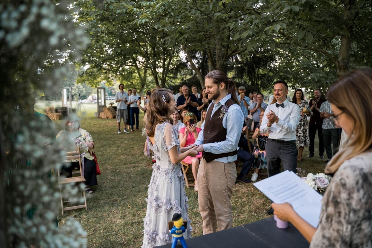 Mladenci tijekom ceremonije mogu izmjenjivati vlastite zavjete ili pak u nju ubaciti što god požele; od recitacija, raznolike glazbe, govora... Ceremonija može biti tematska, humoristična, duga, kratka... Osim klasične razmjene prstenja često se odlučuju za još za neki simboličan čin kojim će zapečatiti svoju ljubav; ostavljaju otiske dlanova u drvetu, potpisuju vjenčani certifikat i slično. U konačnici, svi zajedno slažemo i komponiramo njihovu vjenčanu sonatu.