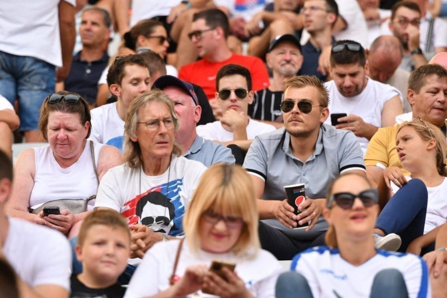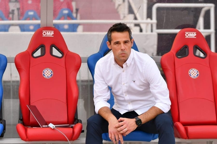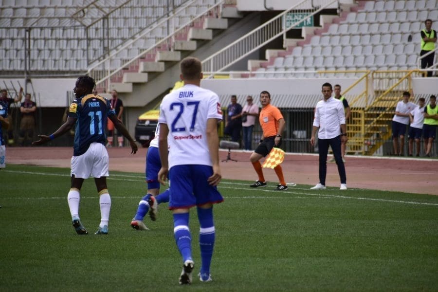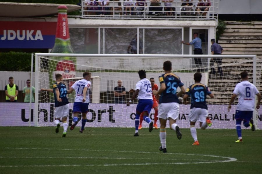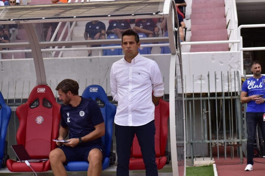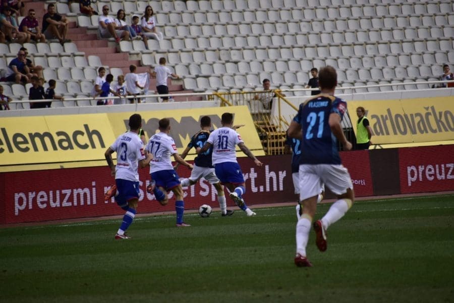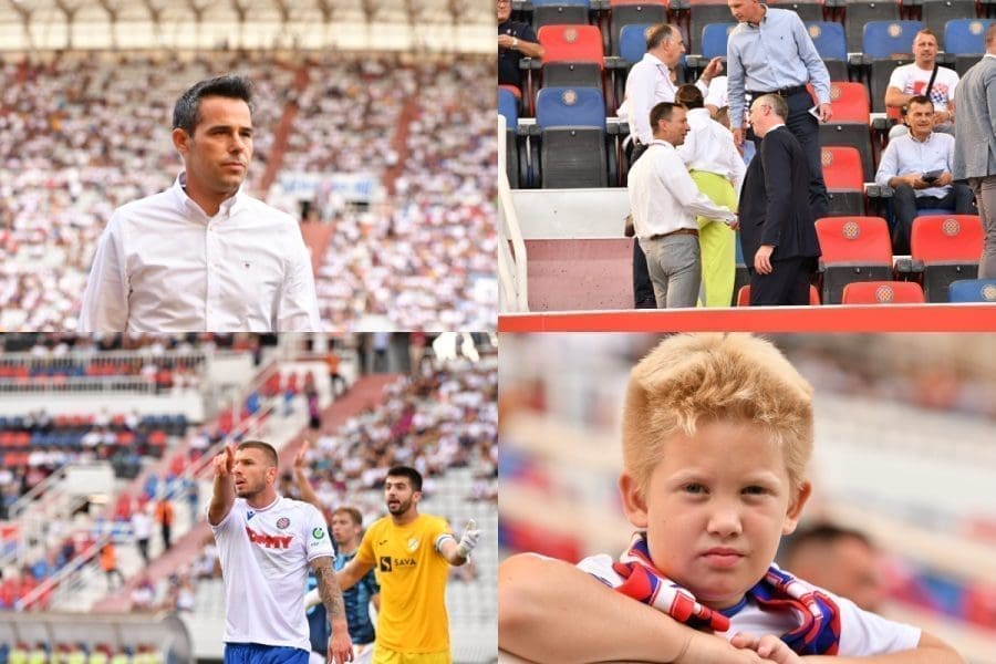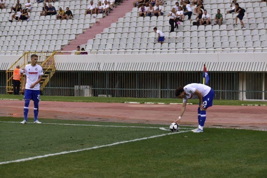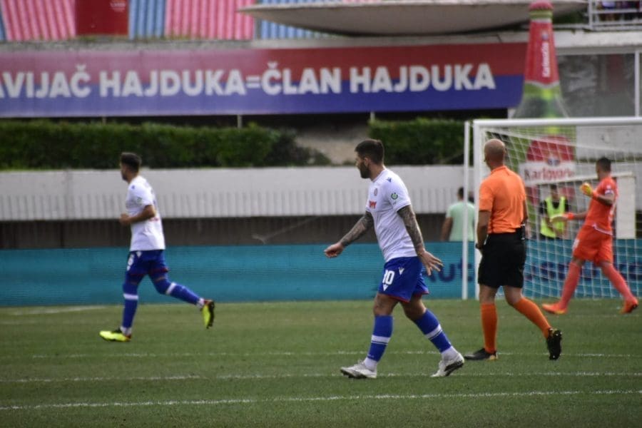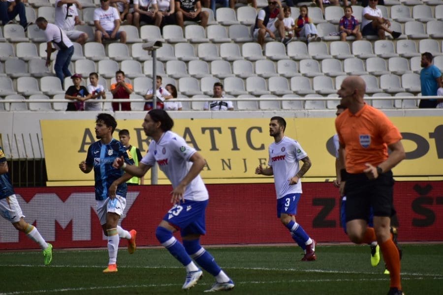 U prvih pet minuta igra se dinamično. Hajduk ima blagu inicijativu, a vrijedi istaknuti pljesak koji je zaradio novi trener Mislav Karoglan.
