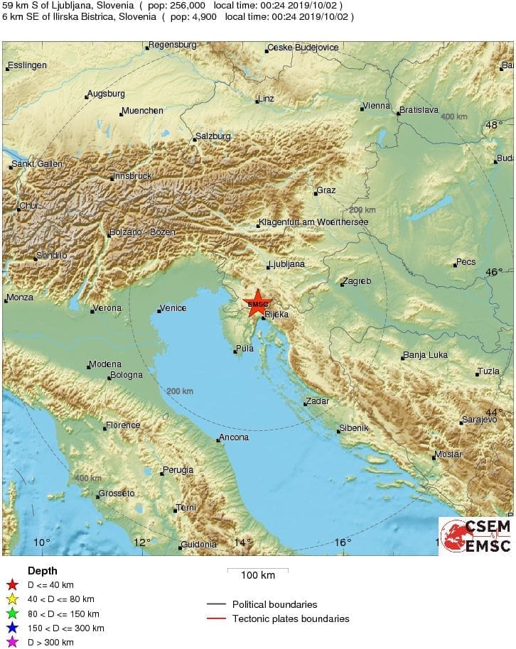 Prema podacima EMSC-a, u susjednoj Sloveniji se u 00:24 dogodio umjereno jak potres magnitude 3,7 po Richteru. Epicentar mu je bio 7 kilometara jugoistočno od Ilirske Bistrice, nedaleko od granice s Hrvatskom.
