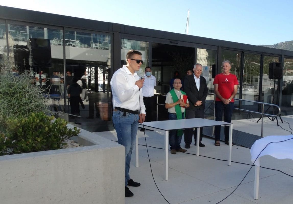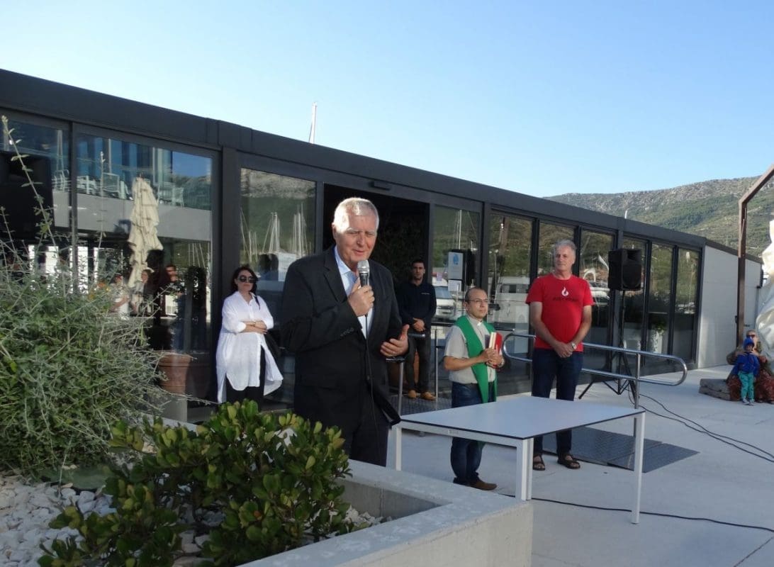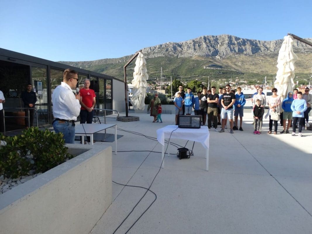 U govoru se Josip Berket, vlasnik Marine Kaštela i dopredsjednik, kao i jedan od osnivača veslačkog kluba, osvrnuo na izvrsne rezultate na državnom prvenstvu, ta izrazio nadu da će novi brod biti dodatna motivacija za marljivo treniranje i zdrav sportski život.