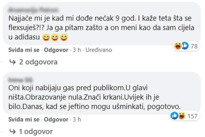 "Gaseri su ljudi koji nose markiranu odjeću i koji imaju puno novaca! (Eto ja sam već u zreloj dobi, ali čujem od mlađih)", "Zaboli me glava čitajući komentare (ne zbog komentara nego zbog toga što su ti gaseri). A migrenu dobih od onog 'ide gas' i 'reši'... Kako može toliki debilizam postati toliki popularizam? Iskreno, žao mi te djece, ali kad bi meni moji tako pričali i razmišljali pod punim gasom bi morali 'rešiti' da to izbace iz glave". "Po objašnjenjima se da zaključiti da su to papci koji misle da su frajeri", komentirali su joj neki.