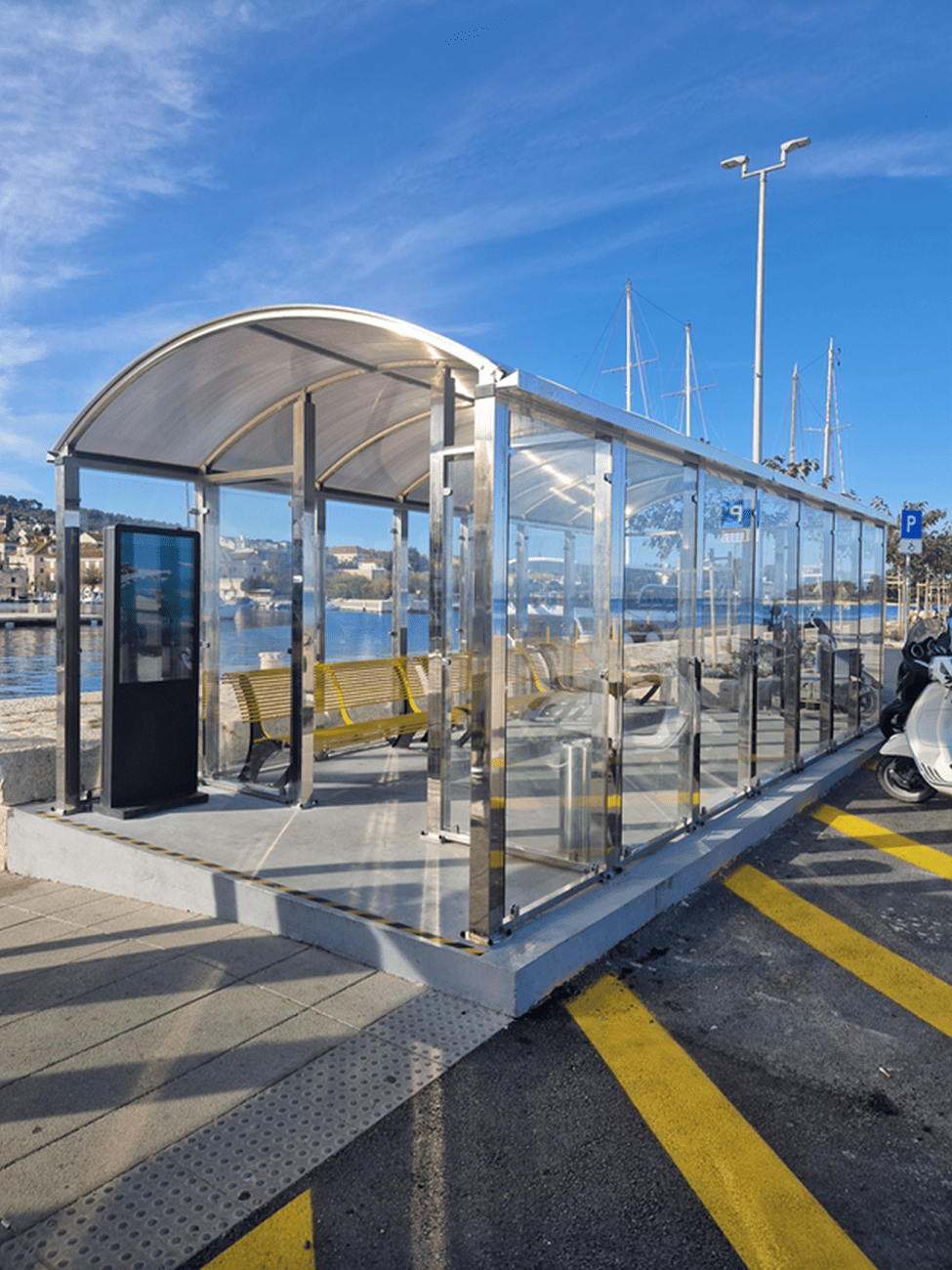 Jedan od najznačajnijih zahvata proveden je u trajektnoj luci Supetar, koja predstavlja glavna vrata otoka Brača i jednu od najprometnijih luka na Jadranu kroz koju godišnje prođe gotovo dva milijuna putnika. Na dvije lokacije izgrađene su sigurne točke, odnosno skloništa od toplinskih valova, koje putnicima, građanima i turistima omogućuju zaklon i predah od visokih temperatura tijekom ljetnih mjeseci. Istodobno su povećane površine pod krošnjama sadnjom 22 stabla murve, vrste otporne na vjetar, sol i visoke temperature, čime je osigurana prirodna hladovina na frekventnim zonama boravka. U luci je postavljena i javna slavina sa zdravstveno ispravnom pitkom vodom, kako bi se u razdobljima ekstremnih vrućina osigurao lak i besplatan pristup osvježenju za putnike i vozače.