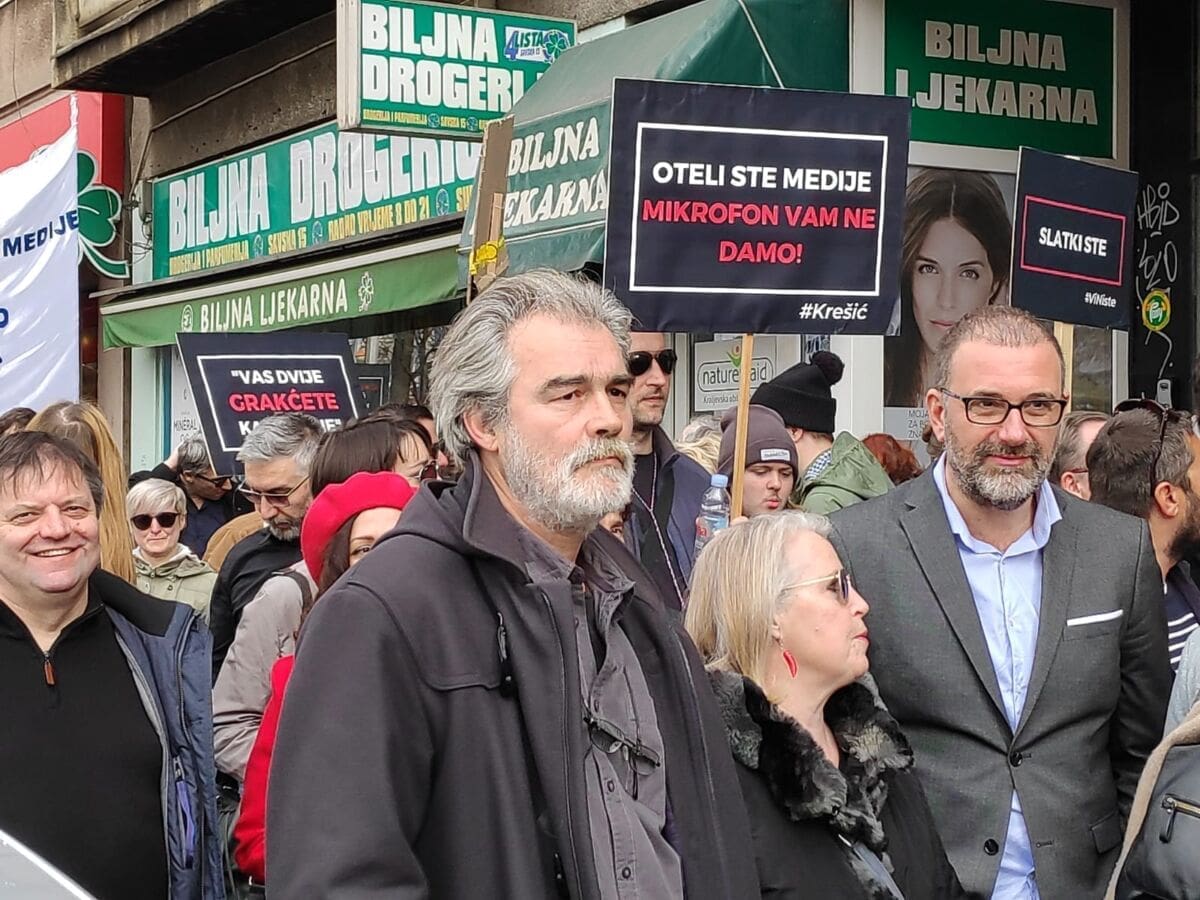 Prosvjed je, uz brojne istaknute medijske djelatnike, predvodio Hrvoje Zovko, predsjednik HND-a, koji je ispred Ministarstva kulture istaknuo da je novinarstvo javno dobro.