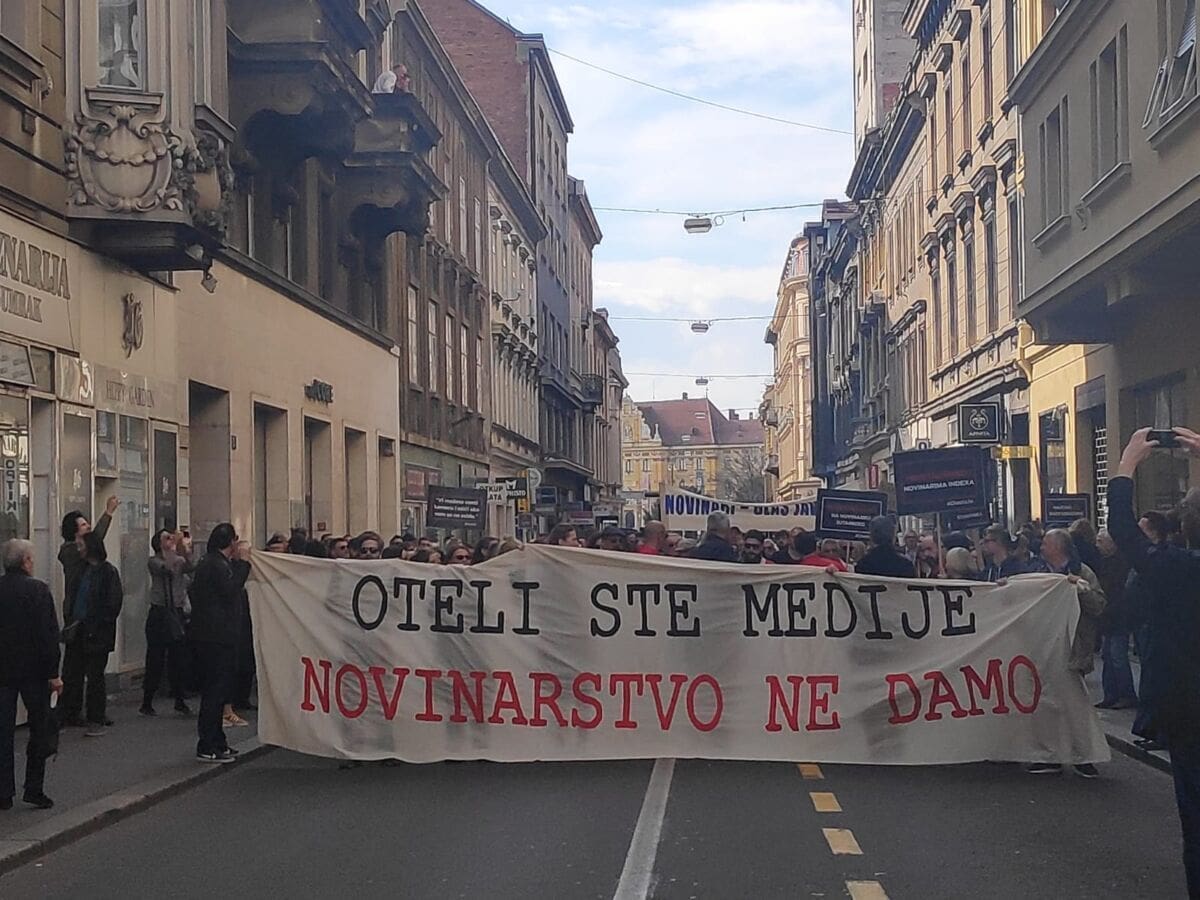 Hrvatsko novinarsko društvo danas od 12:05 sati krenulo je u prosvjed za slobodu novinarstva “Oteli ste medije, novinarstvo ne damo!“. Na Markovu trgu pročitali su svojih osam zahtjeva i uručili ih premijeru Plenkoviću. Zahtjeve možete pročitati OVDJE.