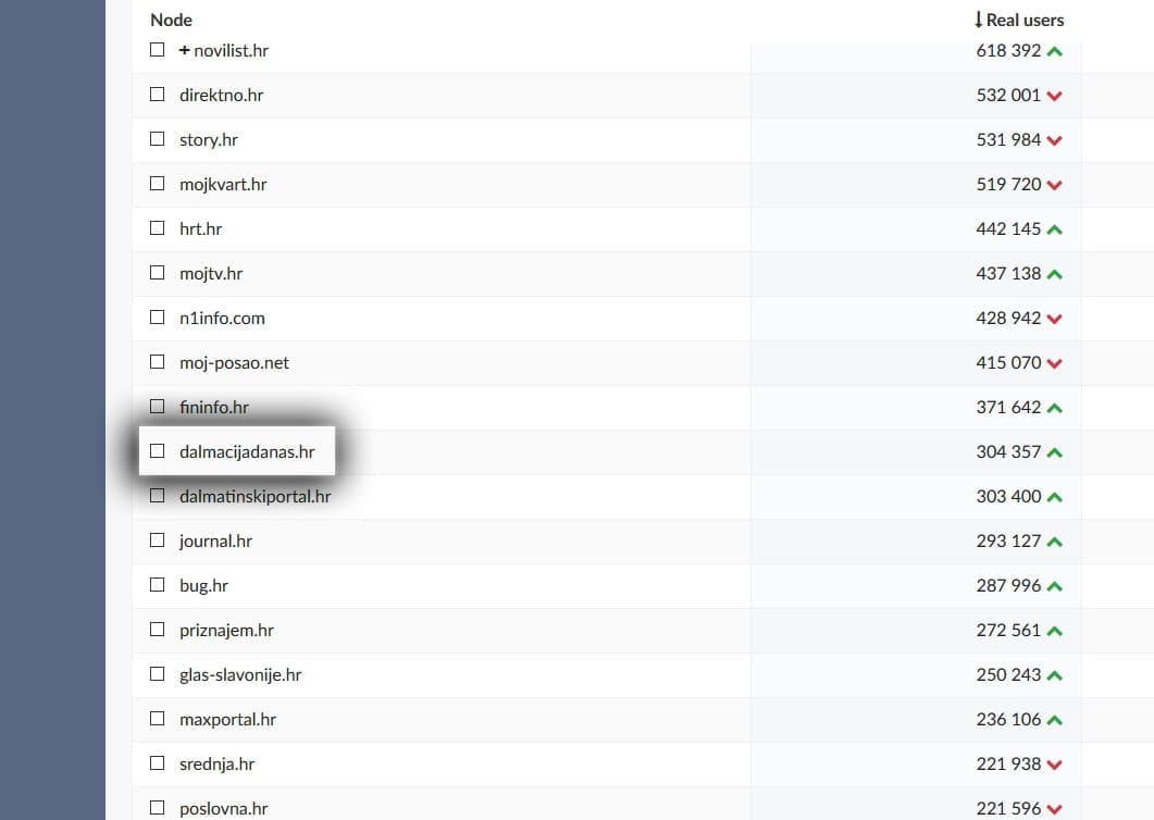 Naš portal u kolovozu je uvršten u ljestvicu istraživanja čitanosti servisa Gemius Audience. Mjesečna ljestvica posjećenosti za studeni izašla je krajem prošlog tjedna. Naš portal je zauzeo vrlo visoko 22. mjesto među portalima u Hrvatskoj. Iako su Google analytics podaci nedvojbeno upućivali na to da je naš portal u vrlo kratko vrijeme postao jedan od najutjecajnijih portala u Dalmaciji, Gemius istraživanje je to i potvrdilo.