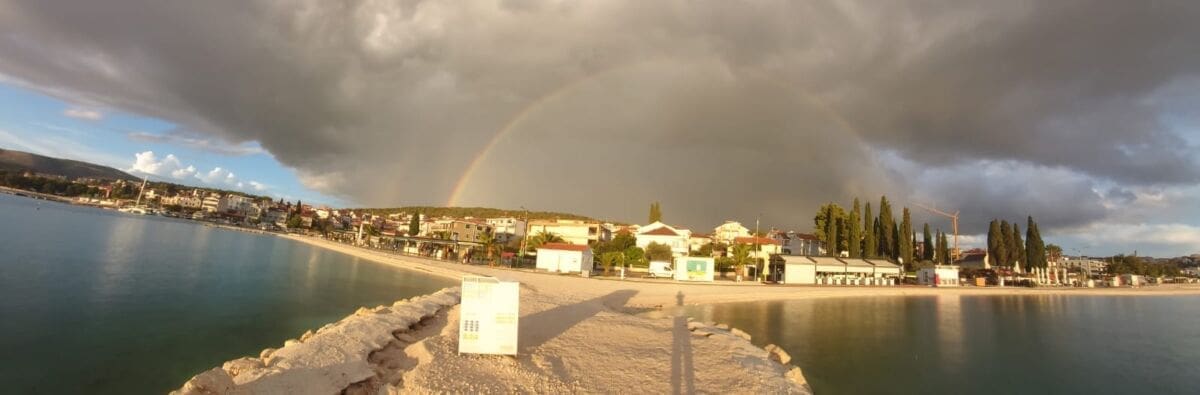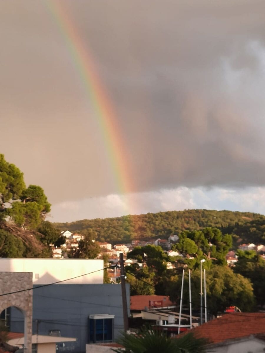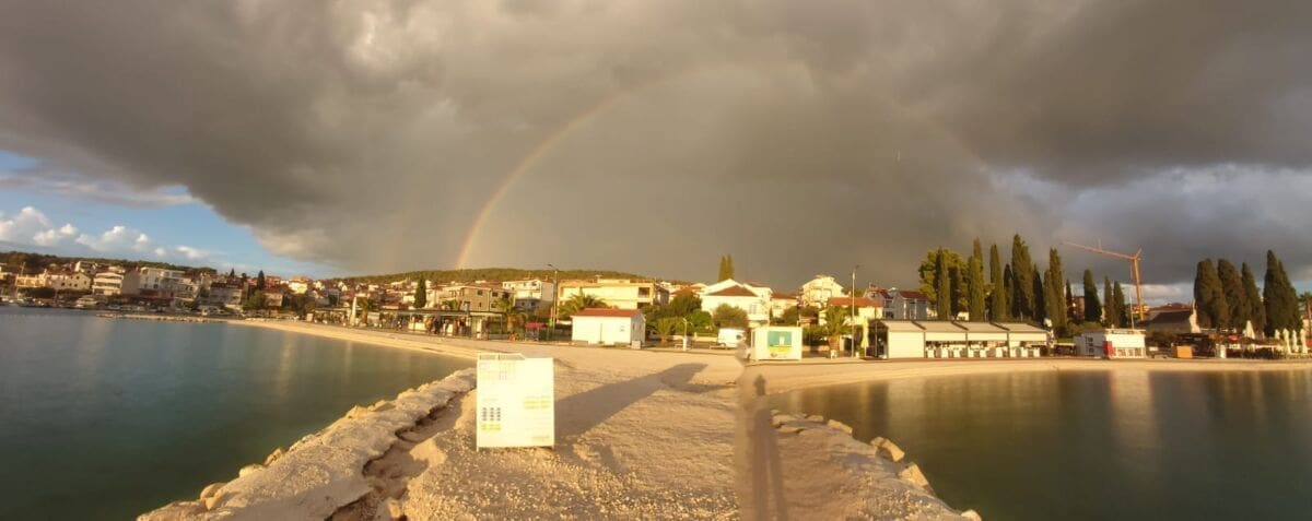 Sam kraj dana, osim predvečernjeg rumenila, bio je obogaćen predivnom dugom koja se mogla vidjeti s trogirskog područja i na zapadu Kaštela.